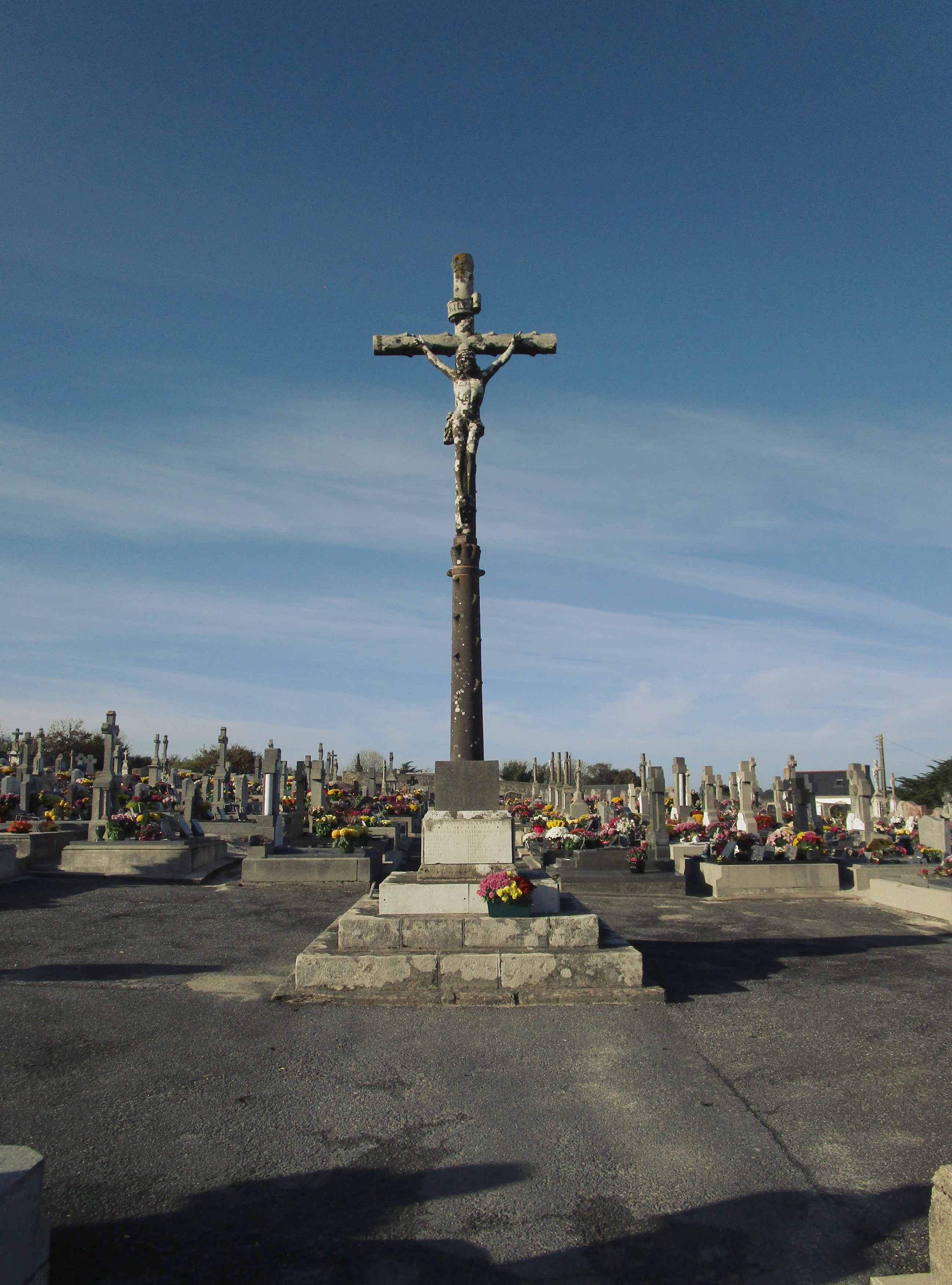 Croix du cimetière en kersantite datée 1869, vue générale sud-est.Immatriculation