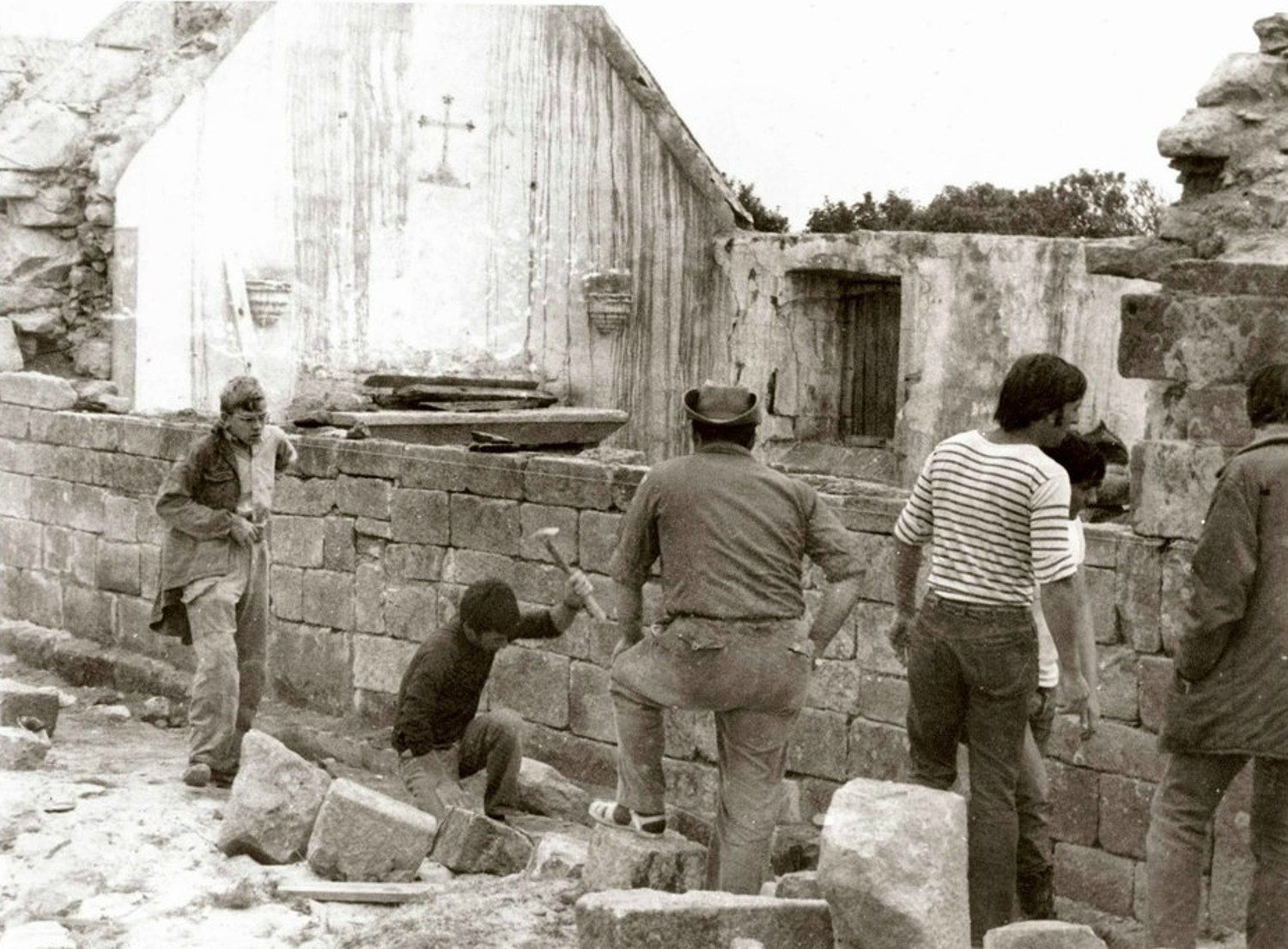 Travaux de 1970, reconstruction du mur nord.Immatriculation