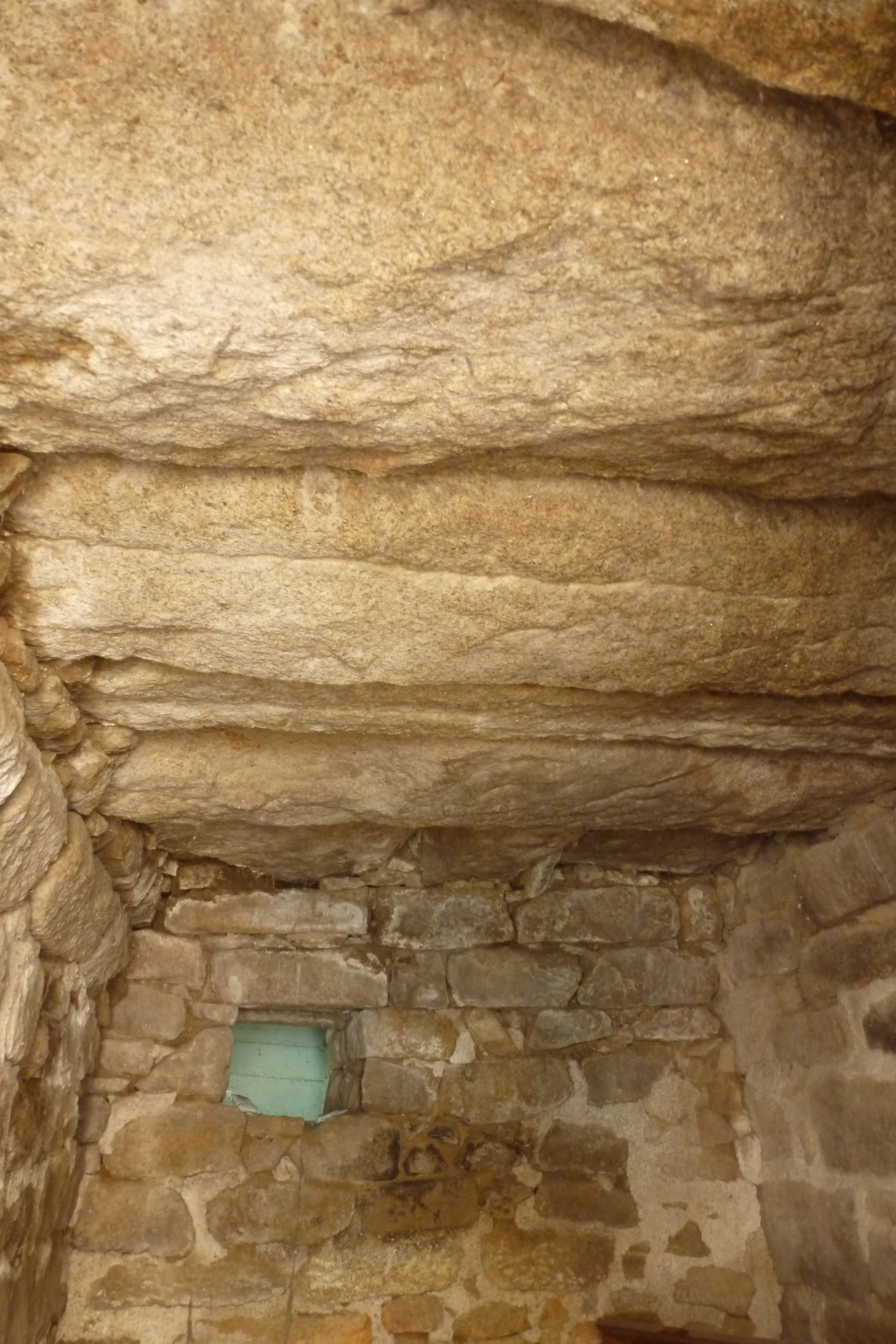 Crèche à cochon, détail du toit en dalles de granite. (2019)Immatriculation
