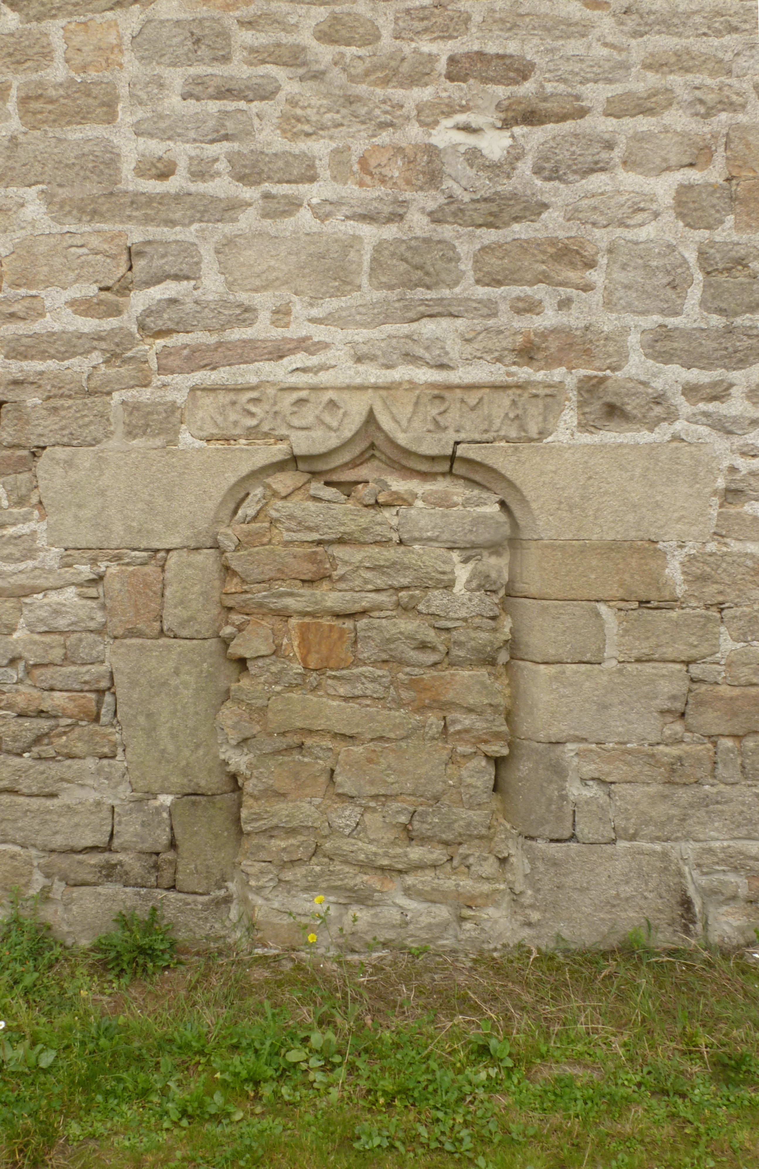 Kerhas Bras, ferme 2, façade postérieure du logis. Détail de la porte en accolade face à la porte d'entrée.Immatriculation