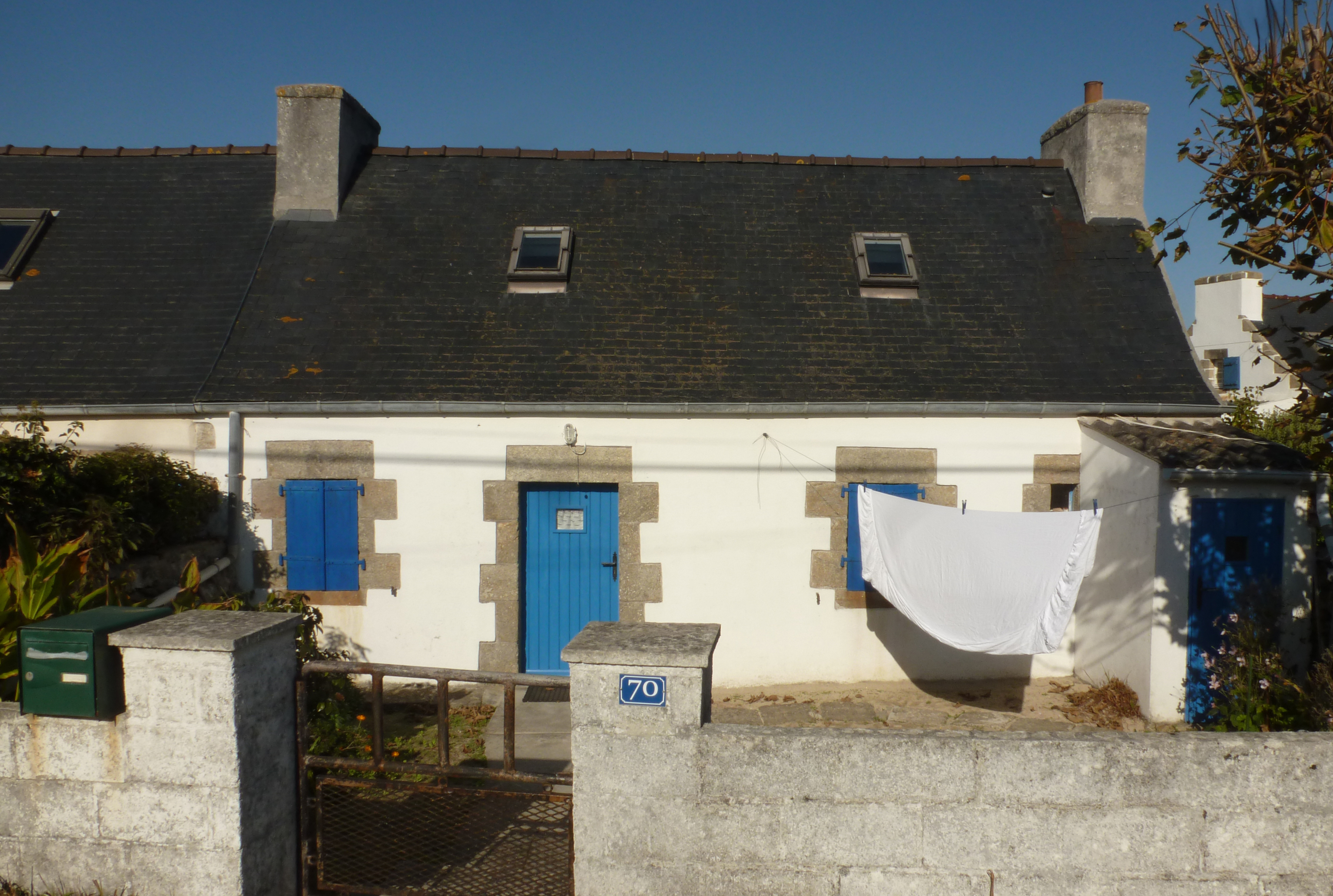 Kermalero, alignement de deux maisons dites "de pêcheur" à deux pièces en rez-de-chaussée. Maison est.Immatriculation