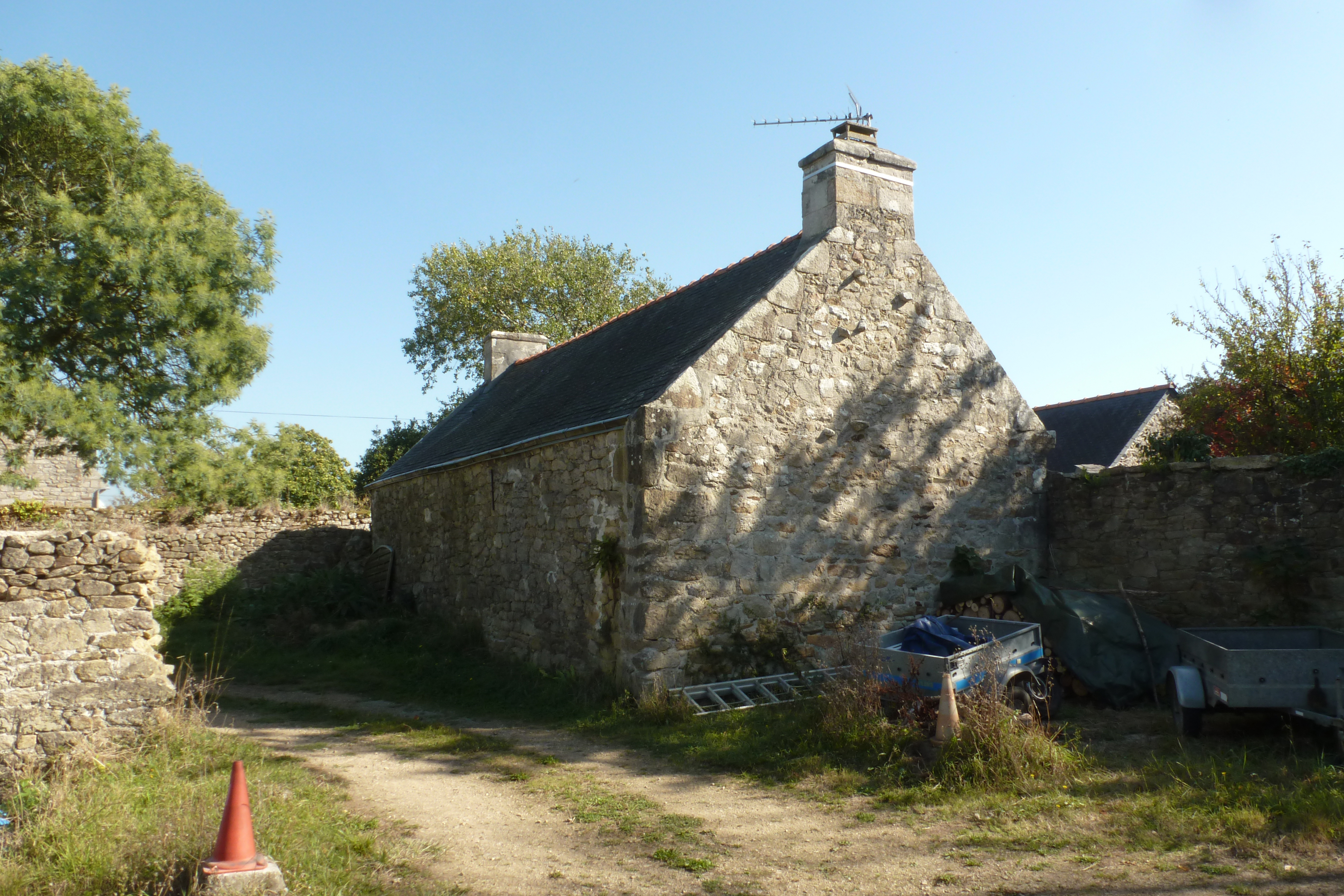 Kerscoulet, maison dite "de pêcheur" à deux pièces en rez-de-chaussée, façade postérieure.Immatriculation
