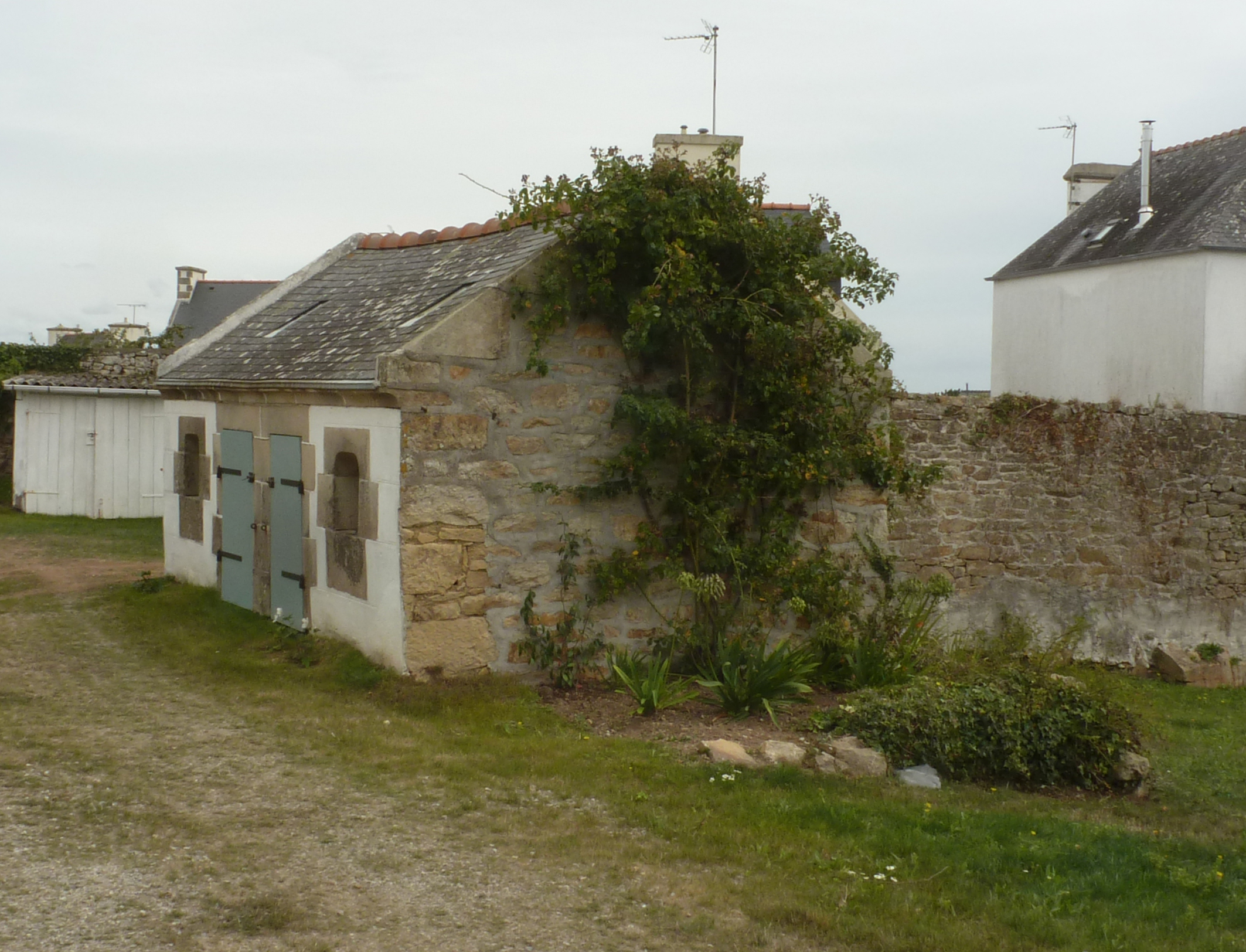 Le bourg, ferme, crèches à cochons, façade antérieure crépie.Immatriculation