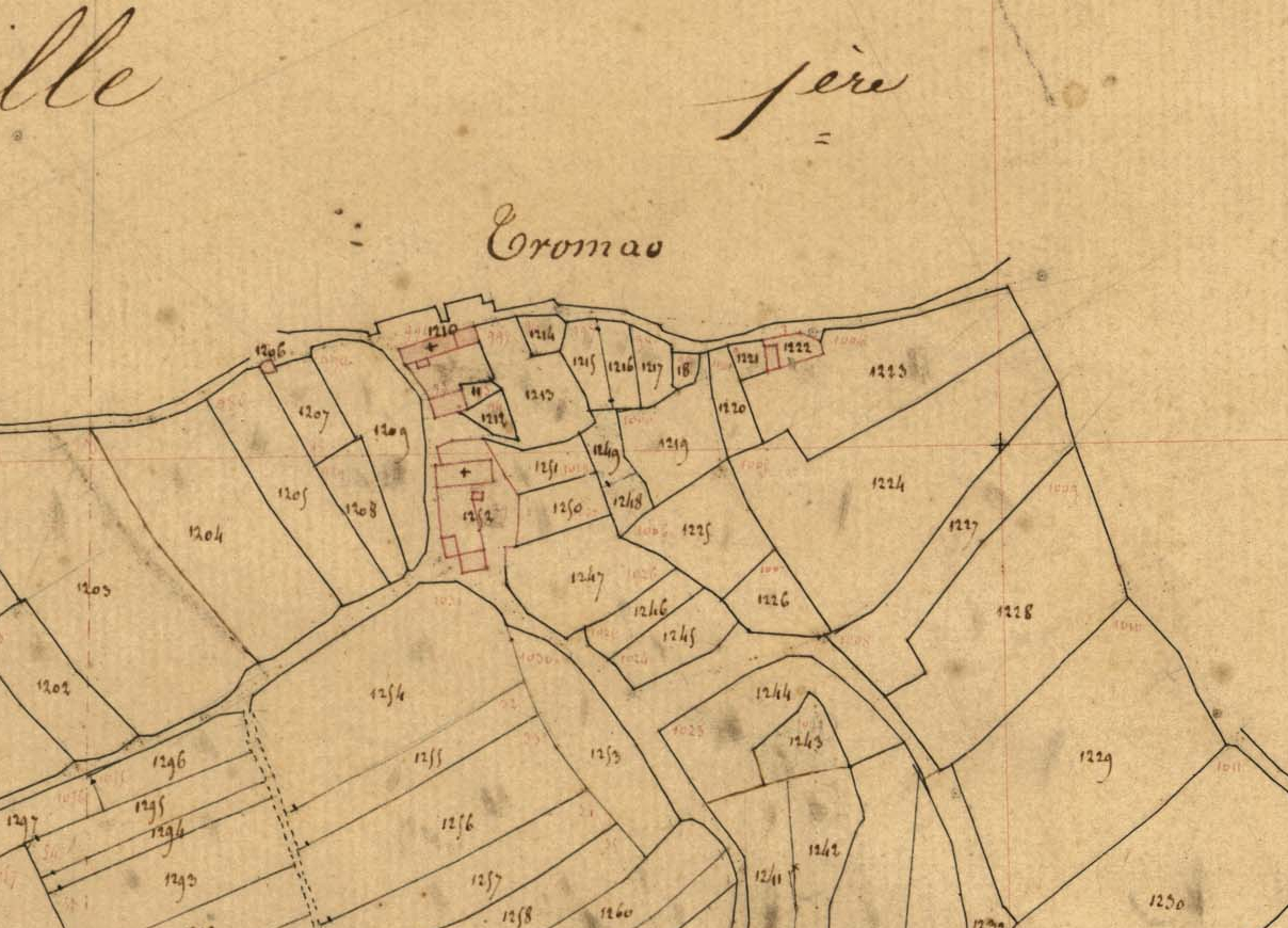 Village de Tromao (partie sud), cadastre ancien de la commune d'Esquibien, 1837.Immatriculation