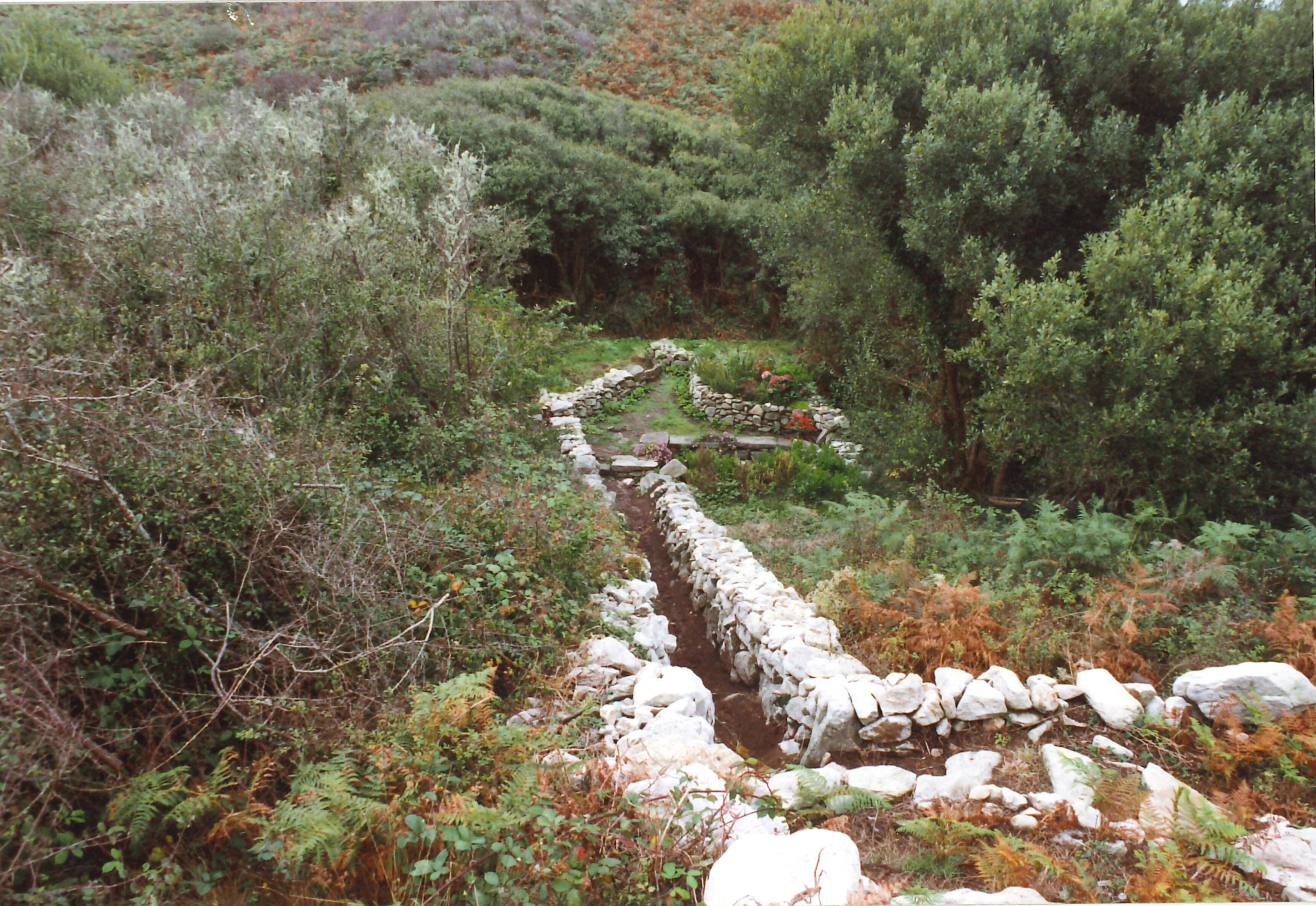 Chemin d'accès au lavoir, vue prise du nord avec le lavoir en contrebas. (1999).Immatriculation