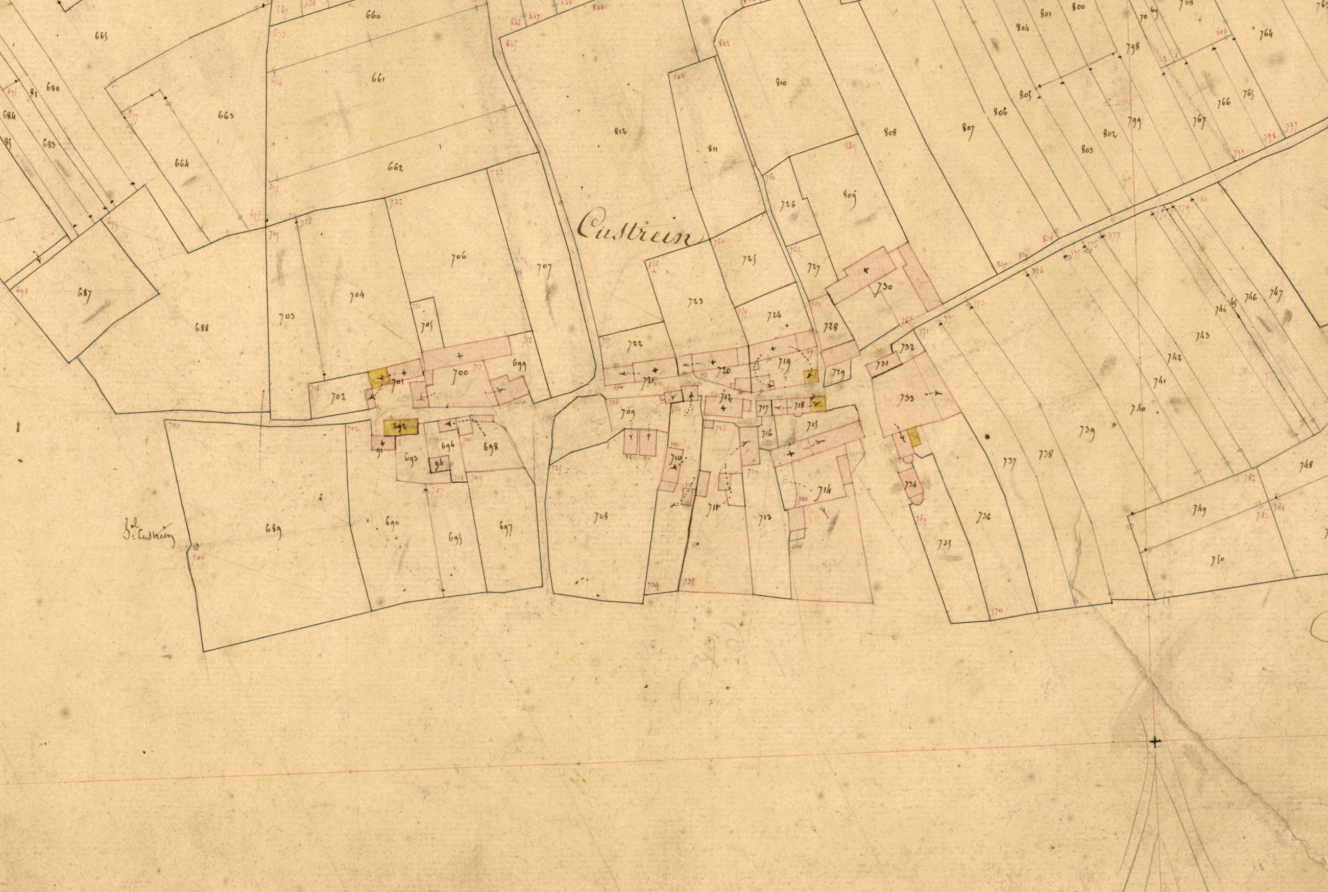 Village de Custrein, cadastre ancien de la commune d'Esquibien, 1837.Immatriculation