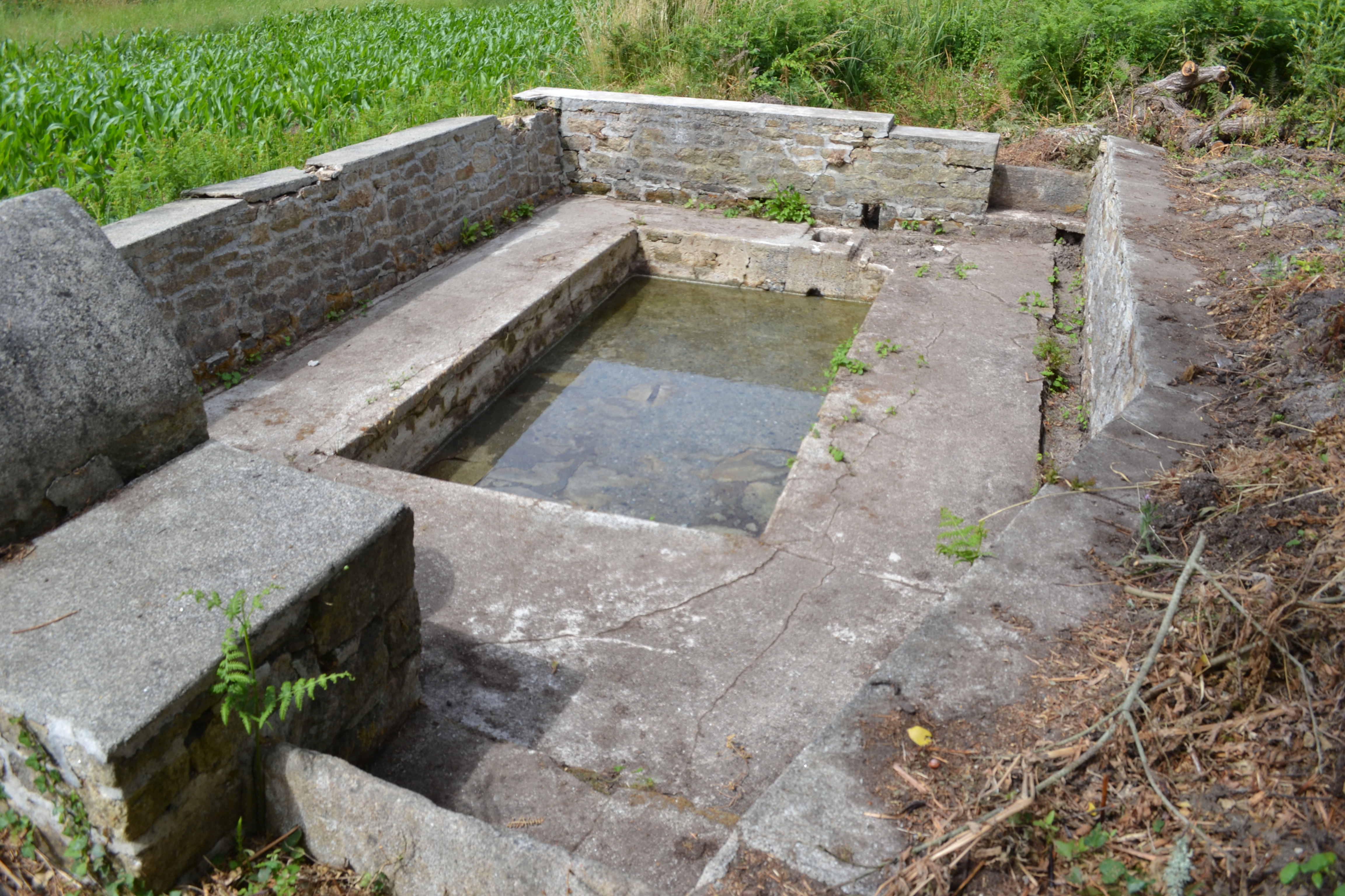 Brignéoc'h, ensemble lavoir fontaine. Vue prise du sud après nettoyage. (2014)Immatriculation