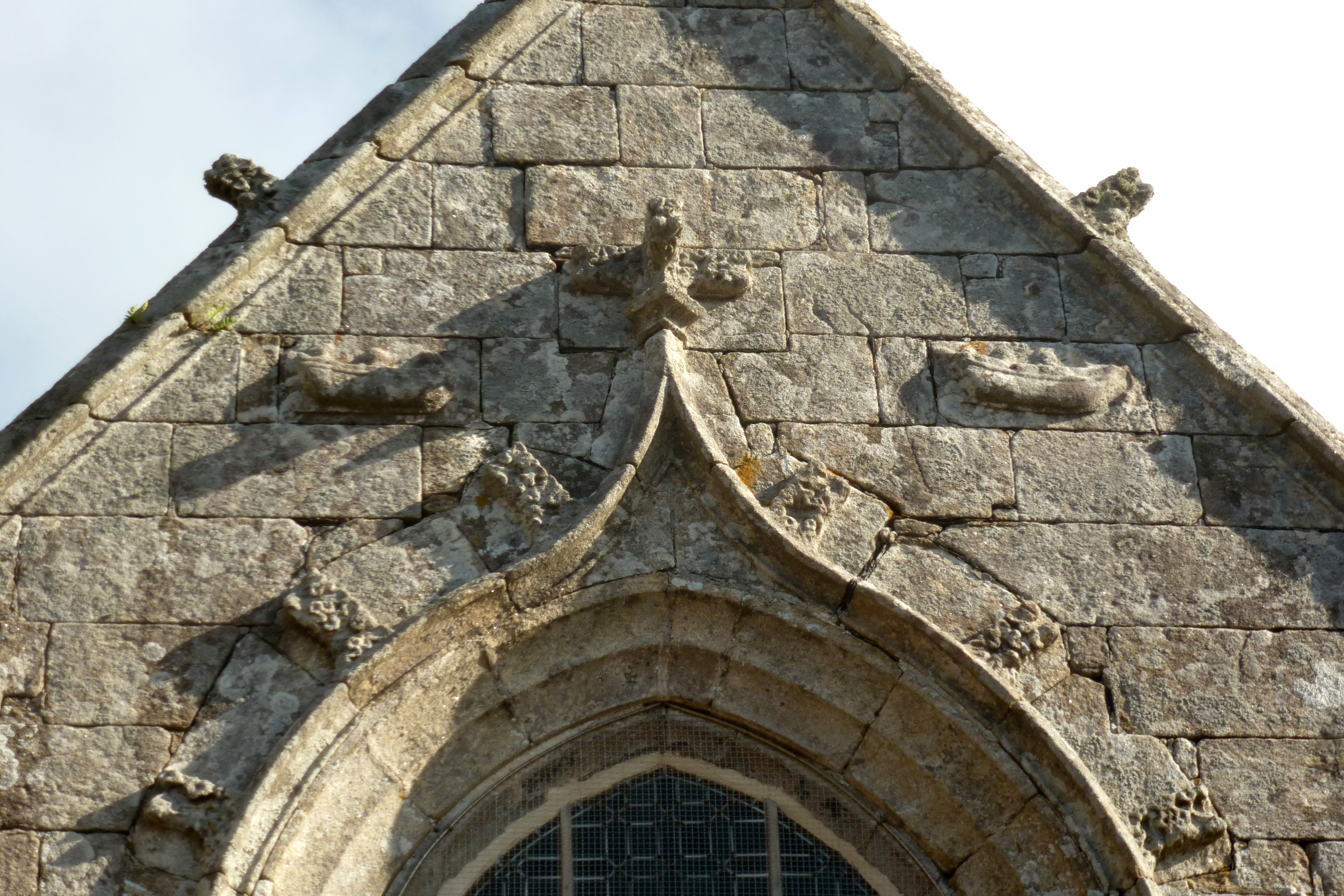 Façade sud, fenêtre à l'est du porche, détail de deux barques de pêche sculptées. (2019)Immatriculation