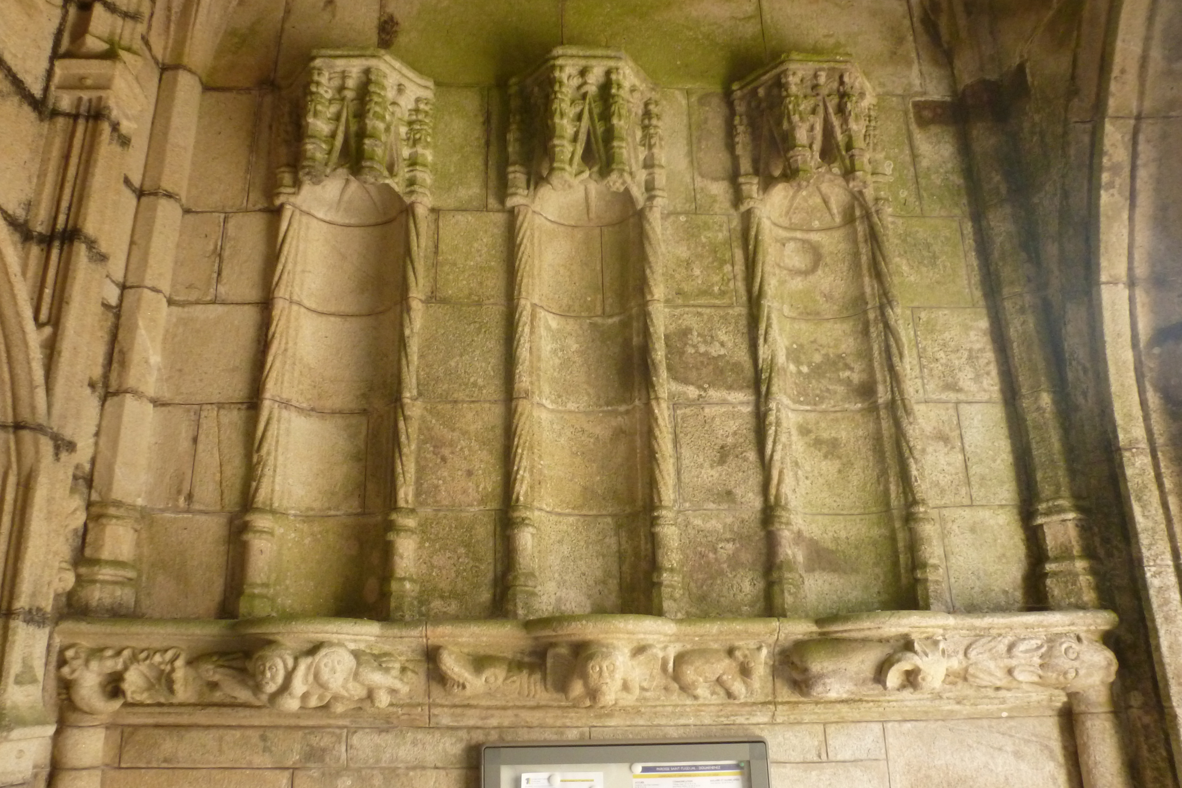 Porche sud, mur intérieur est, détail de trois niches et leur soubassement mouluré. (2019)Immatriculation