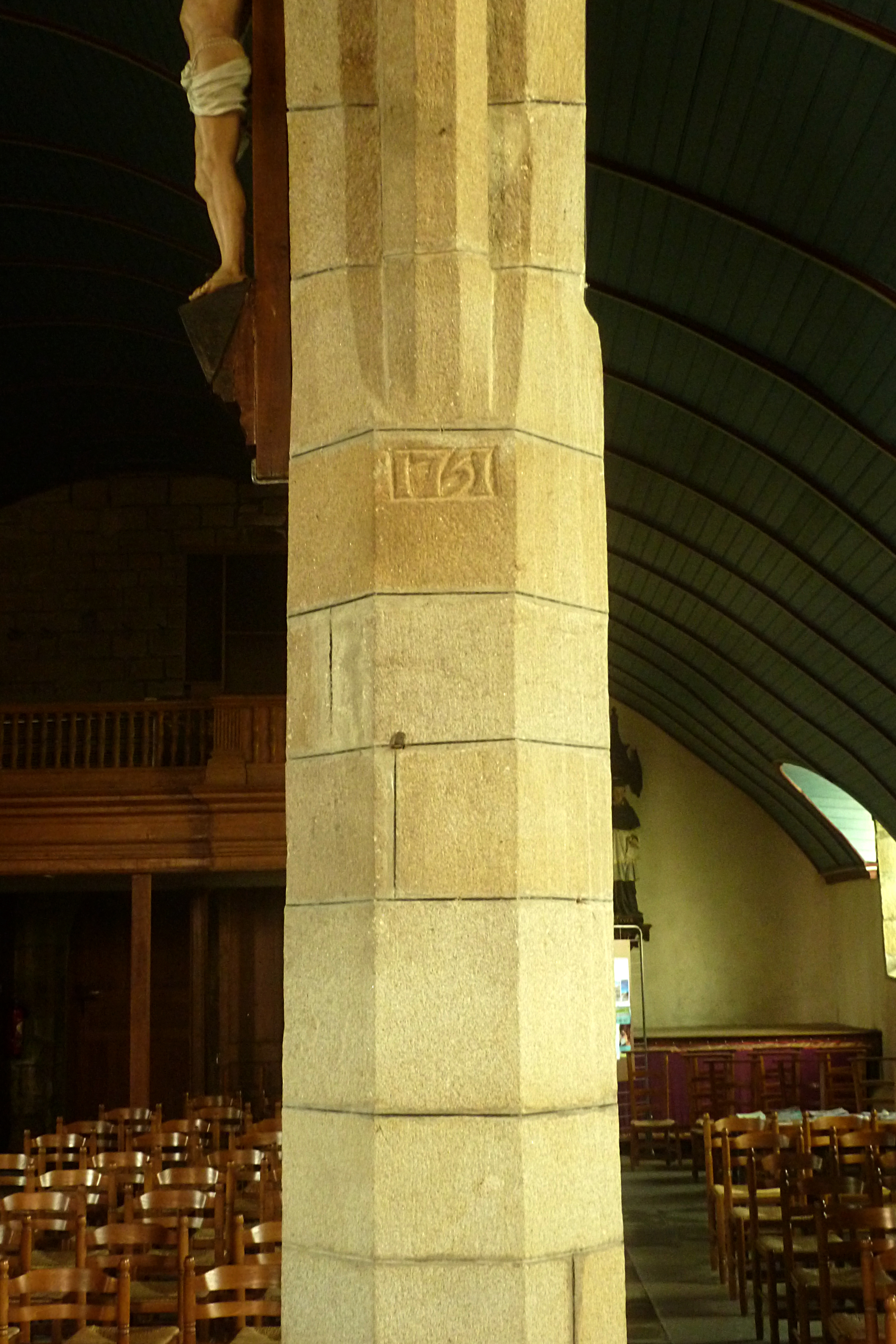 Pile nord, détail de la date portée : 1751. (2019)Immatriculation
