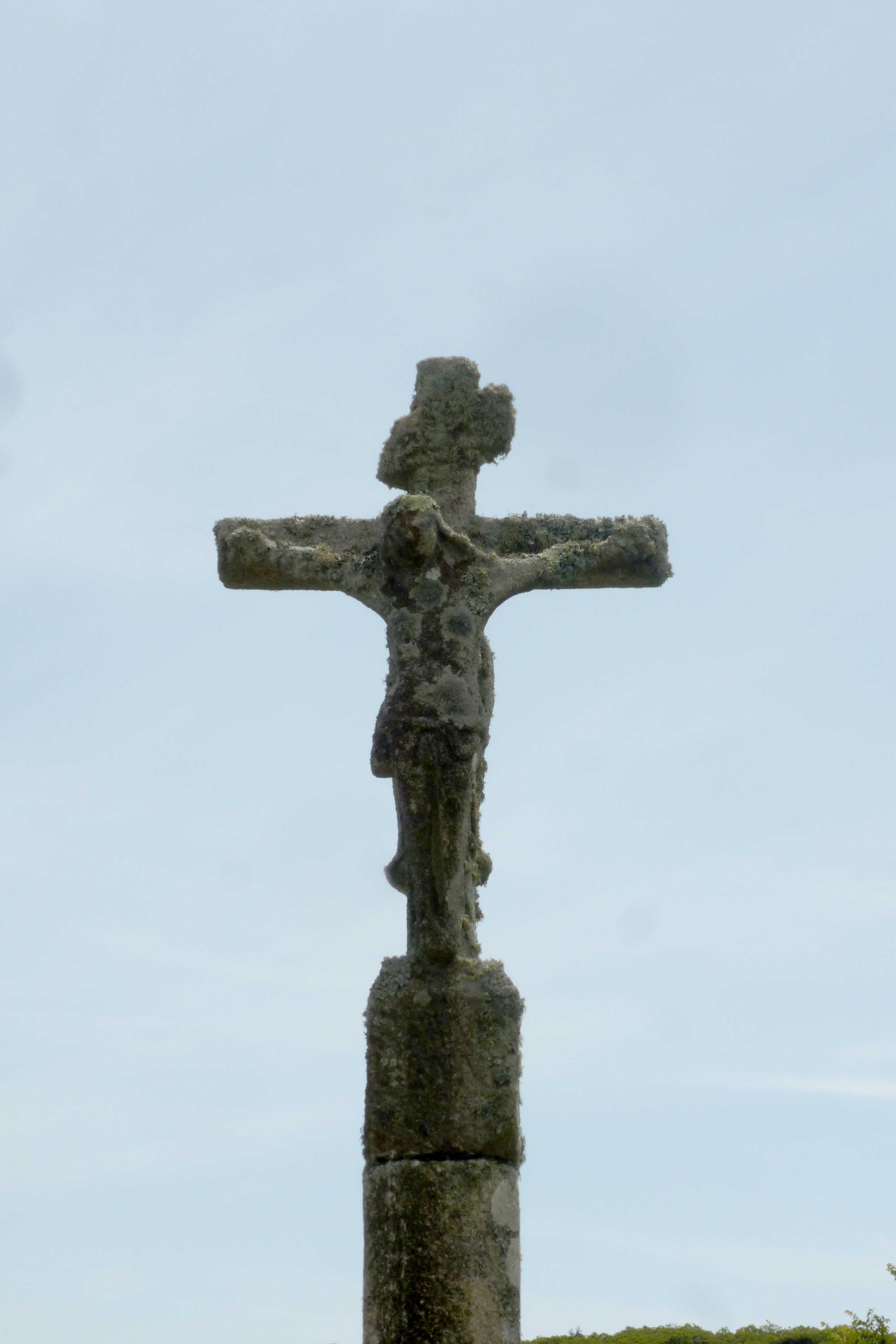 Croix monumentale datée 1869, détail du côté nord du croisillon, crucifix.Immatriculation