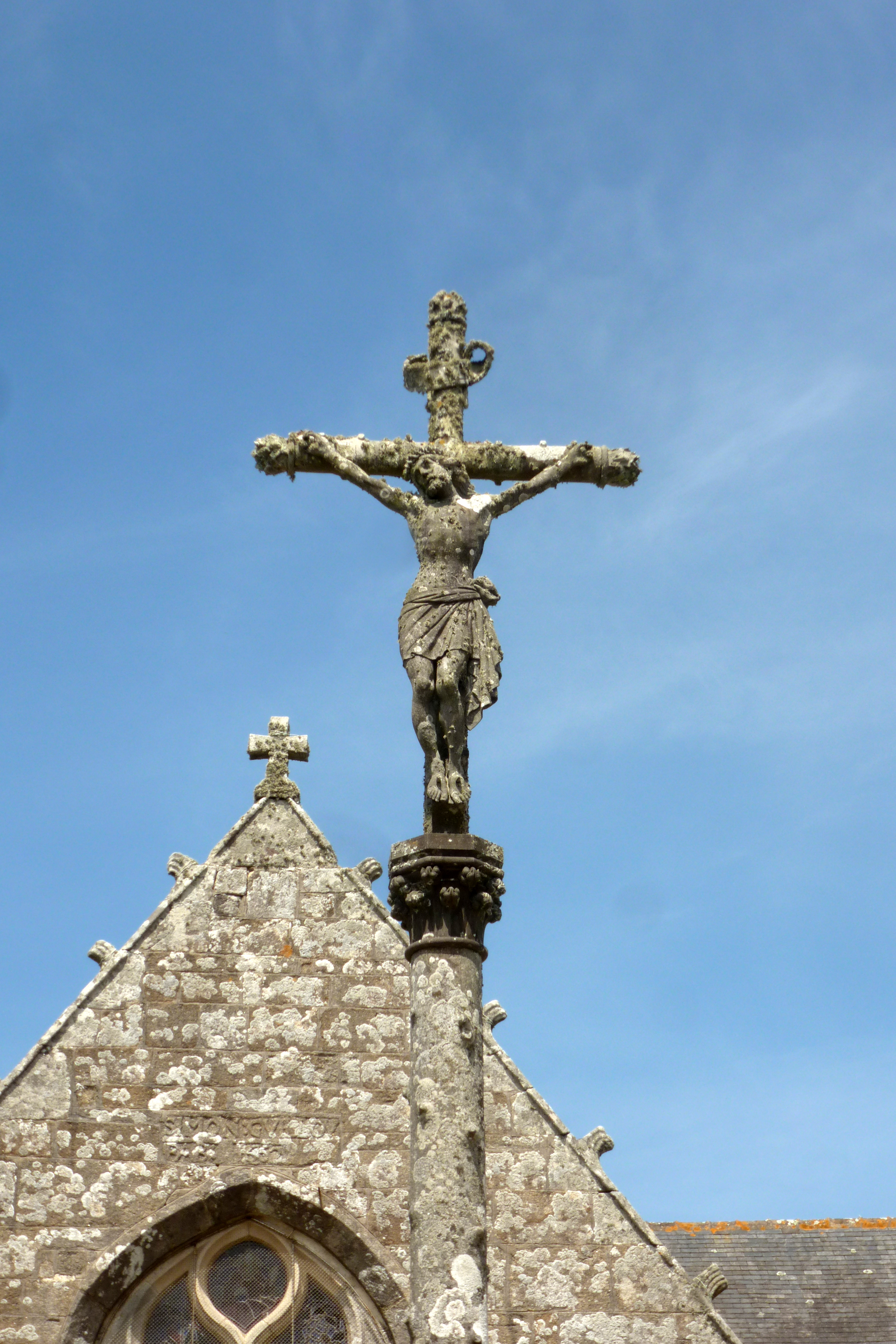 Croix de l'église Saint-Onneau, détail du croisillon. (2019)Immatriculation