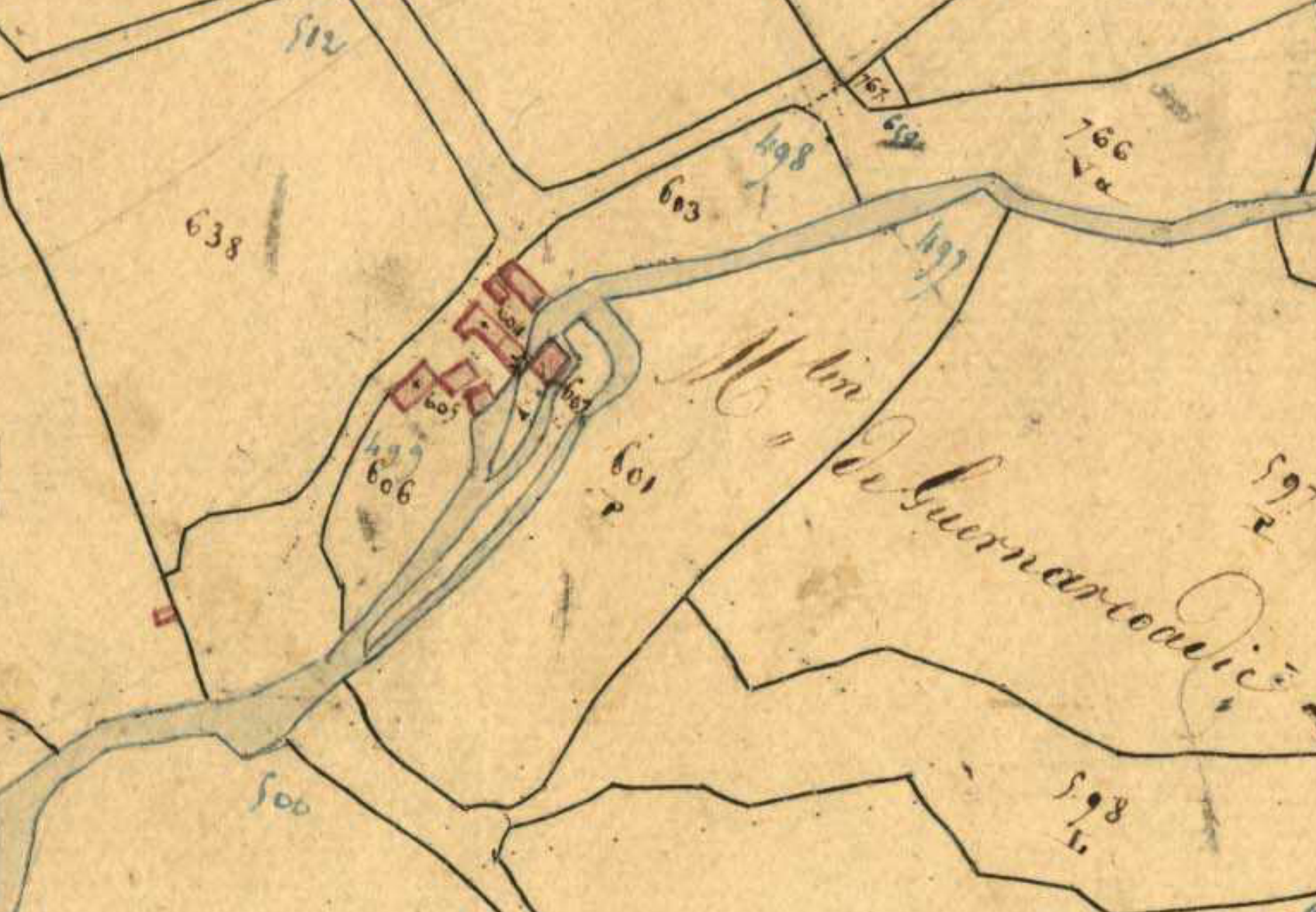 Cadastre napoléonien, moulin de Guern ar Hoadic à St Urbain (29)Immatriculation