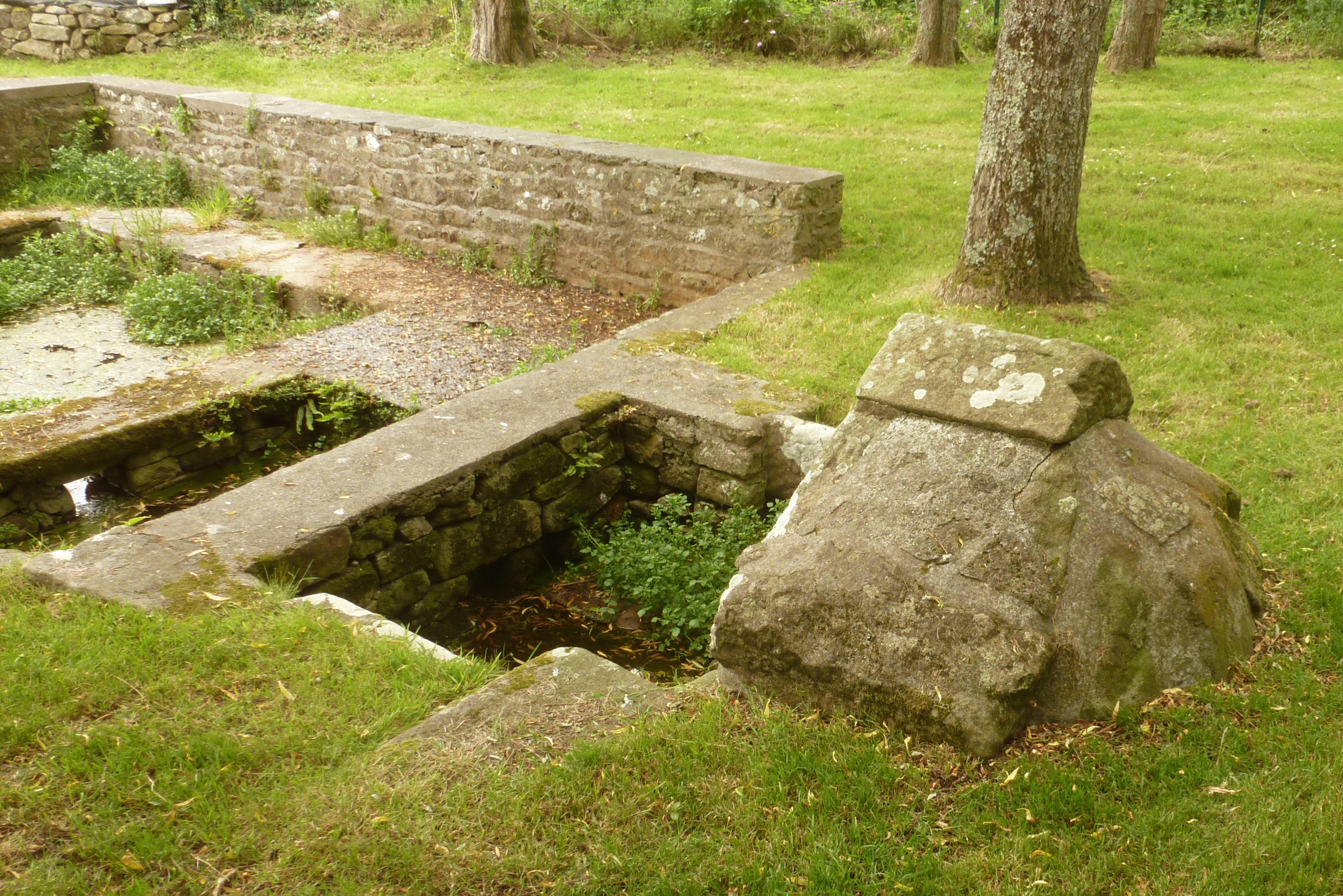 Fontaine Saint-Onneau et lavoir, bourg d'Esquibien, vue générale prise du sud-est. (2019)Immatriculation