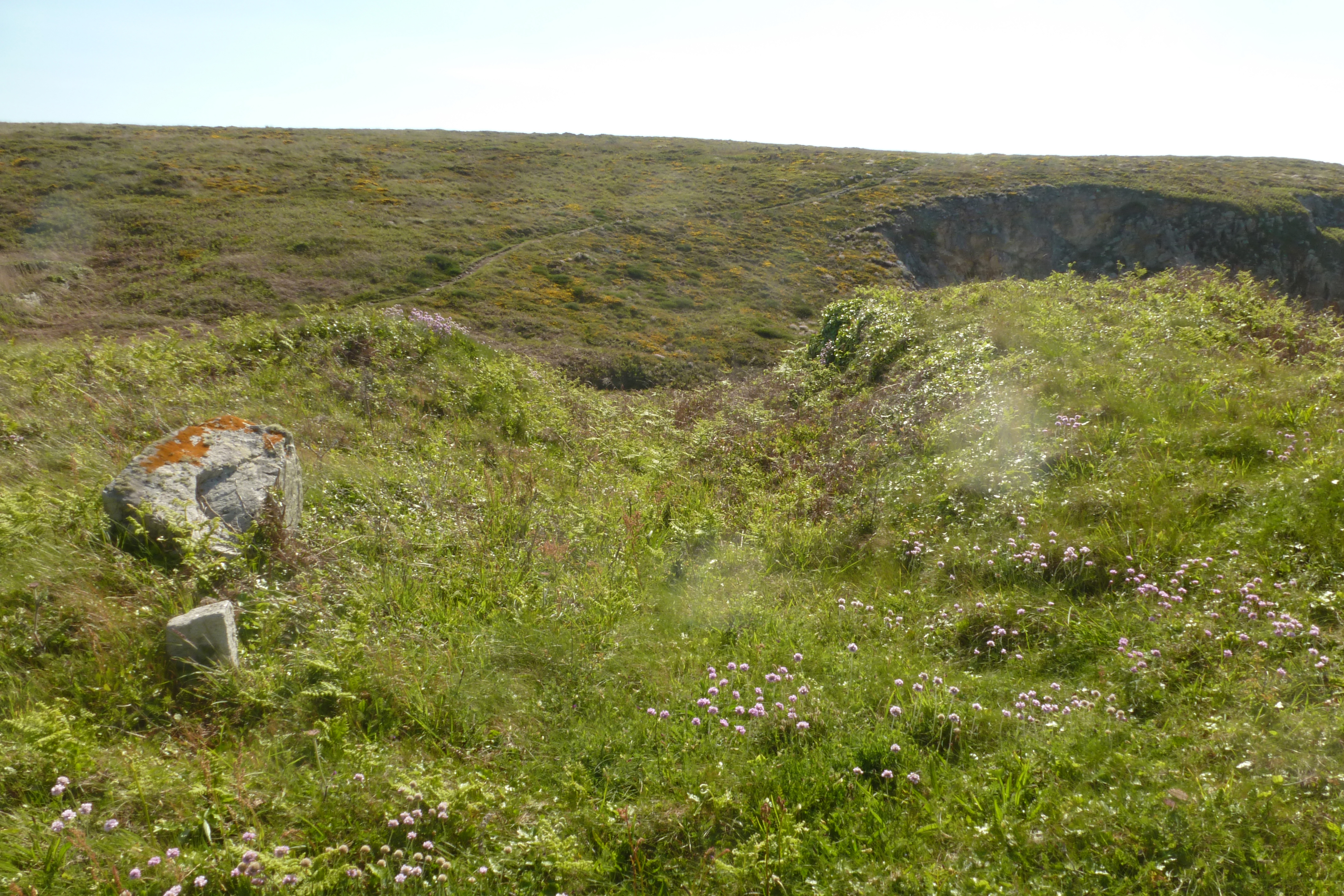 Pointe du Diameur, chemin emprunté par le cheval pour hisser la charge sur la falaise. Présence d'une petite pierre dressée utilisée pour fixer un mât de levage.Immatriculation