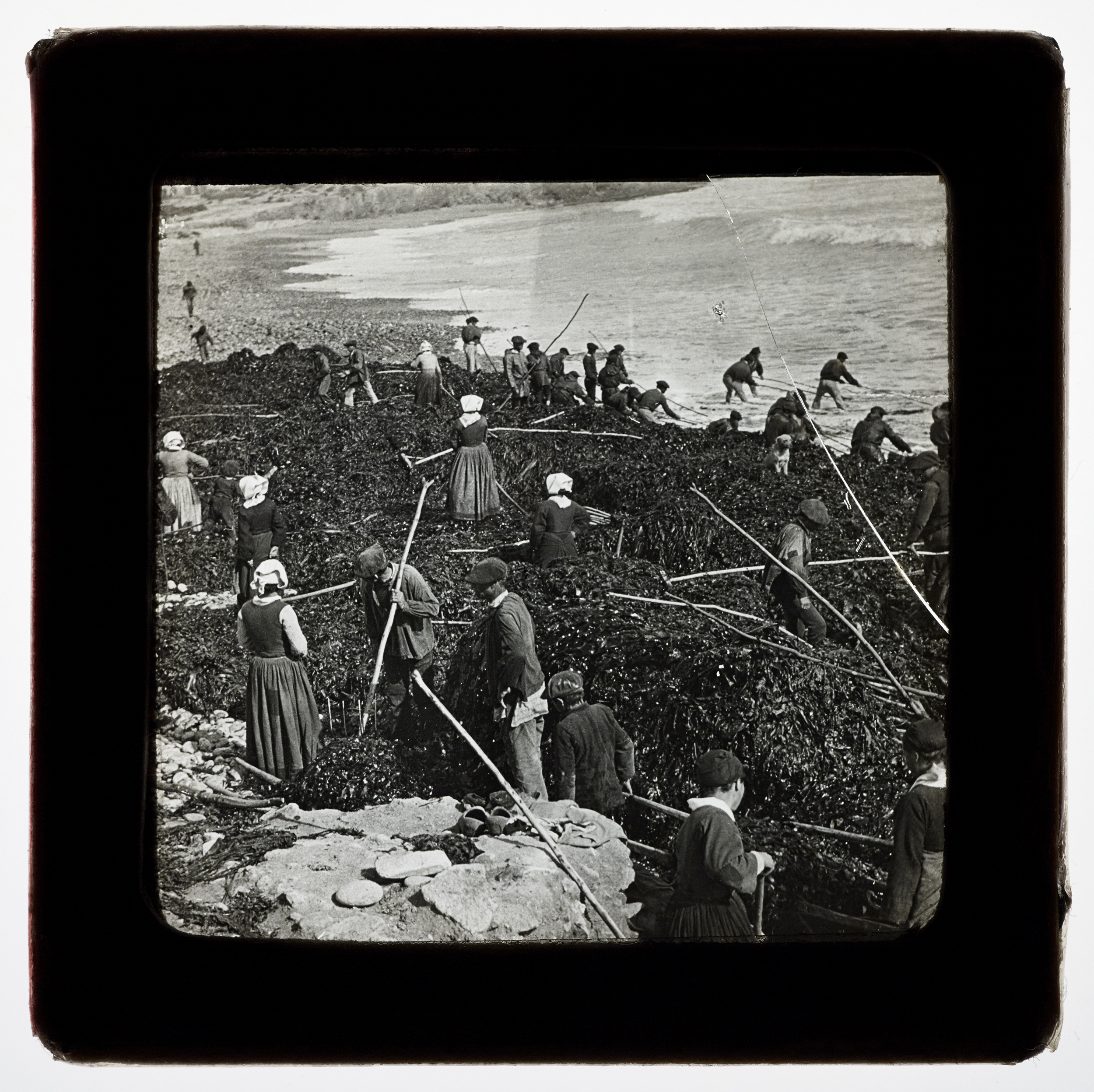 Ramassage du goémon au Loch au début du 20e siècle. (Repro. plaque de verre)Immatriculation