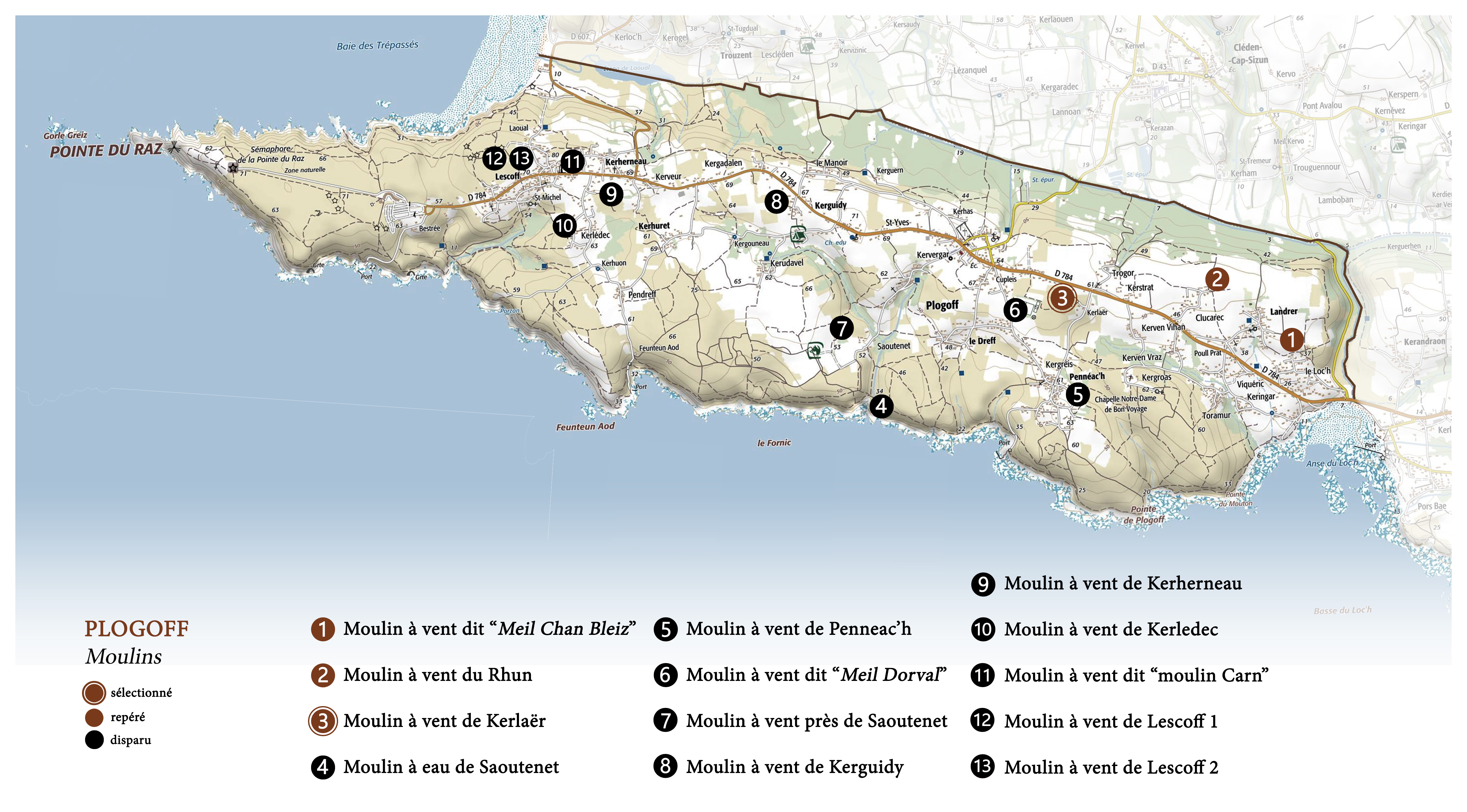 Les moulins de Plogoff, carte de repérage.Immatriculation