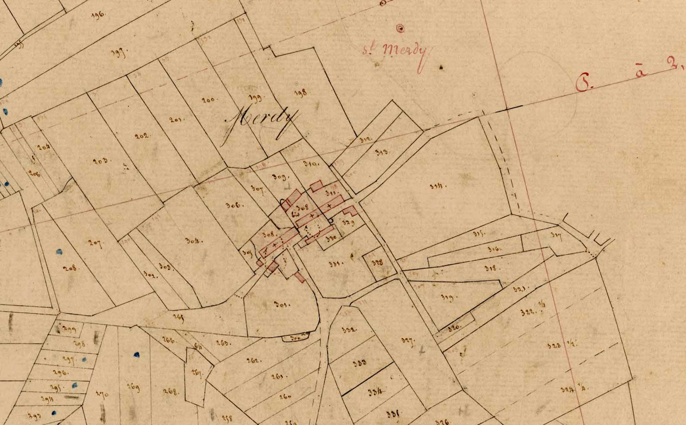 Village du Merdy, cadastre ancien de la commune de Beuzec-Cap-Sizun, 1836.Immatriculation