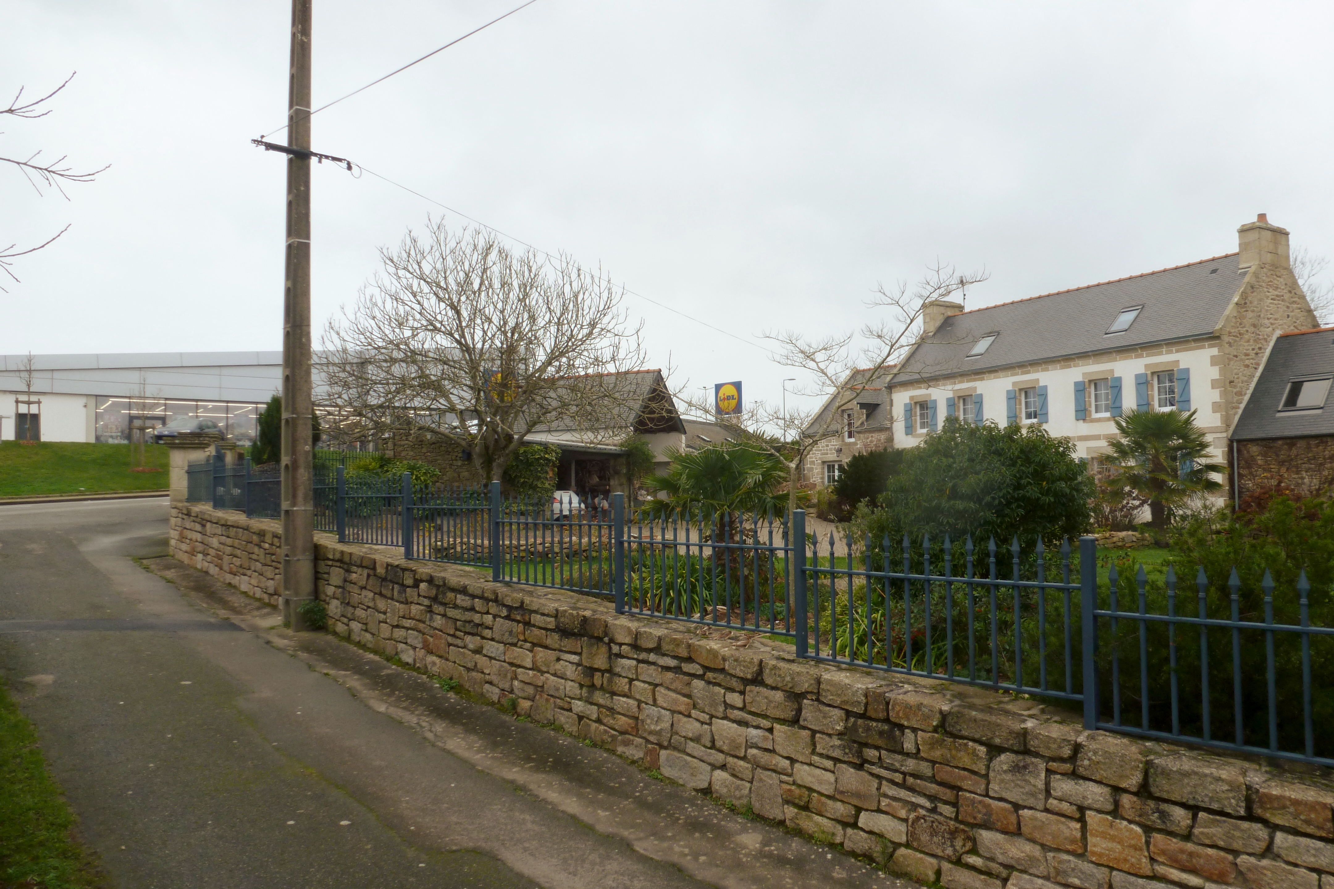 Extrémité sud-ouest du village : Ferme 1 et centre commercial de l'autre côté de la route menant à la Pointe du RazImmatriculation