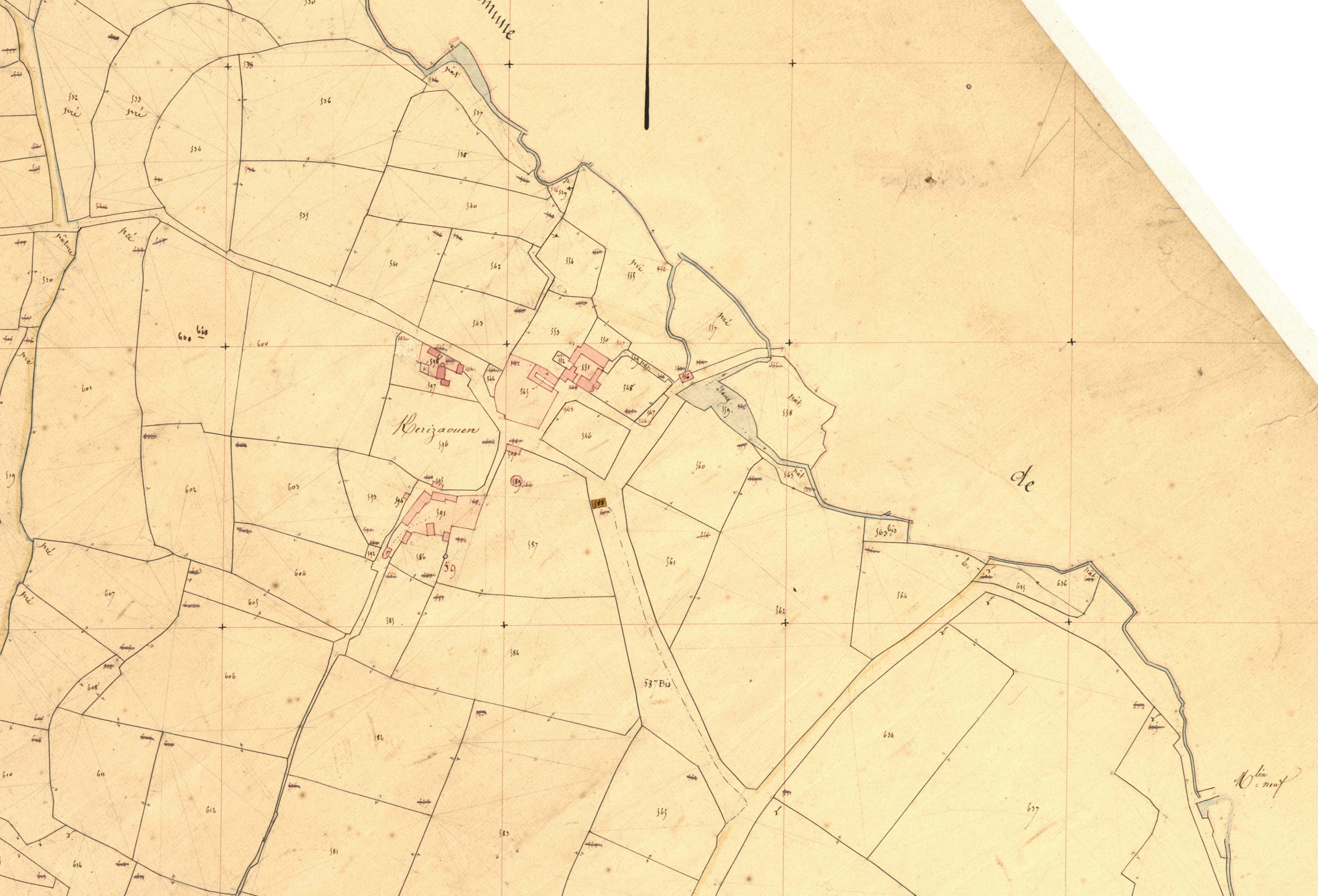 Extrait du cadastre de Plourin, 1845 : Kerizaouen [ancien site manorial] (Archives départementales du Finistère)Immatriculation