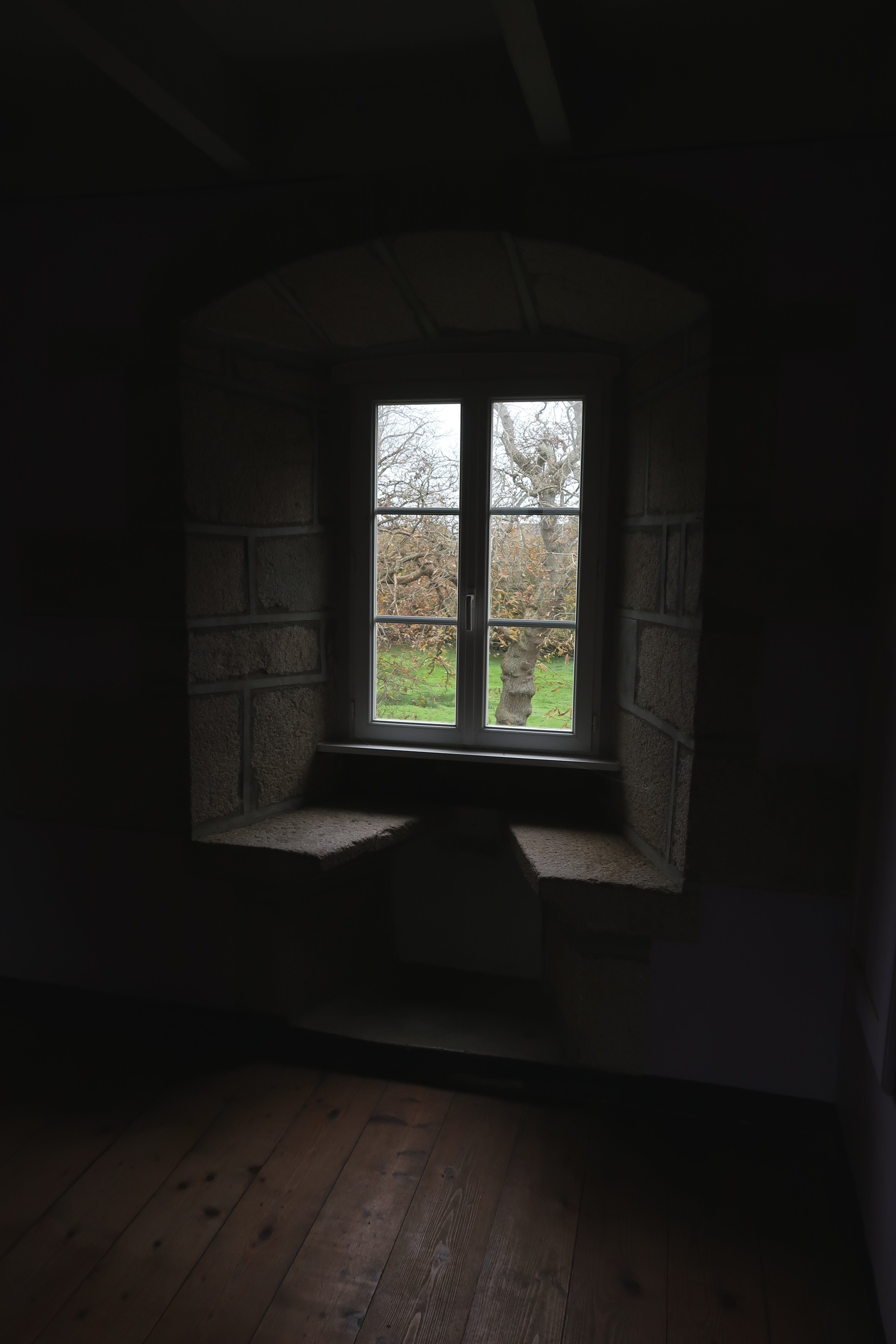 Etage, pièce à feu à usage de chambre, fenêtre à double coussiège (vers le nord)Immatriculation