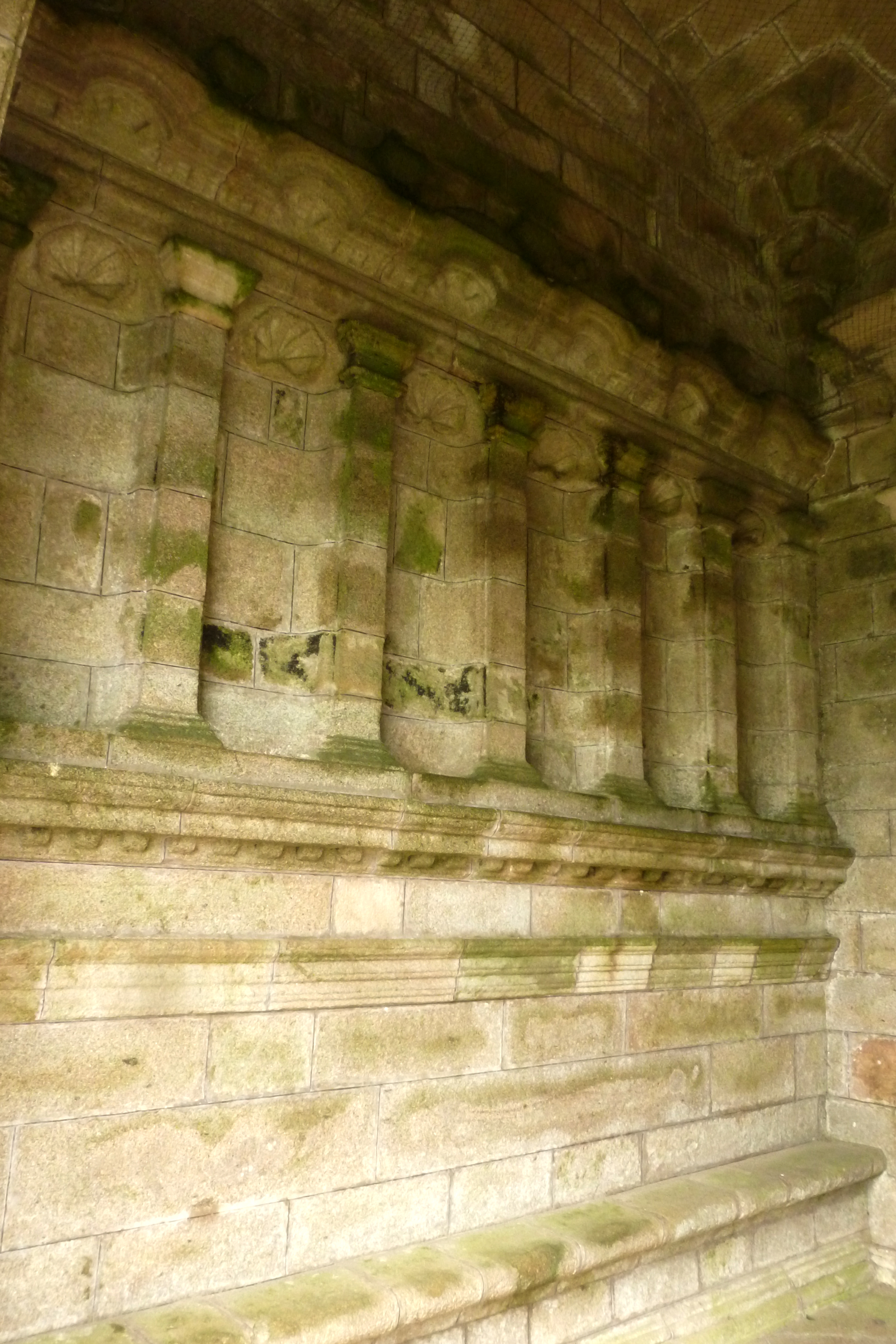 Porche sud, vue intérieure, détail des niches du côté ouest. (2019)Immatriculation
