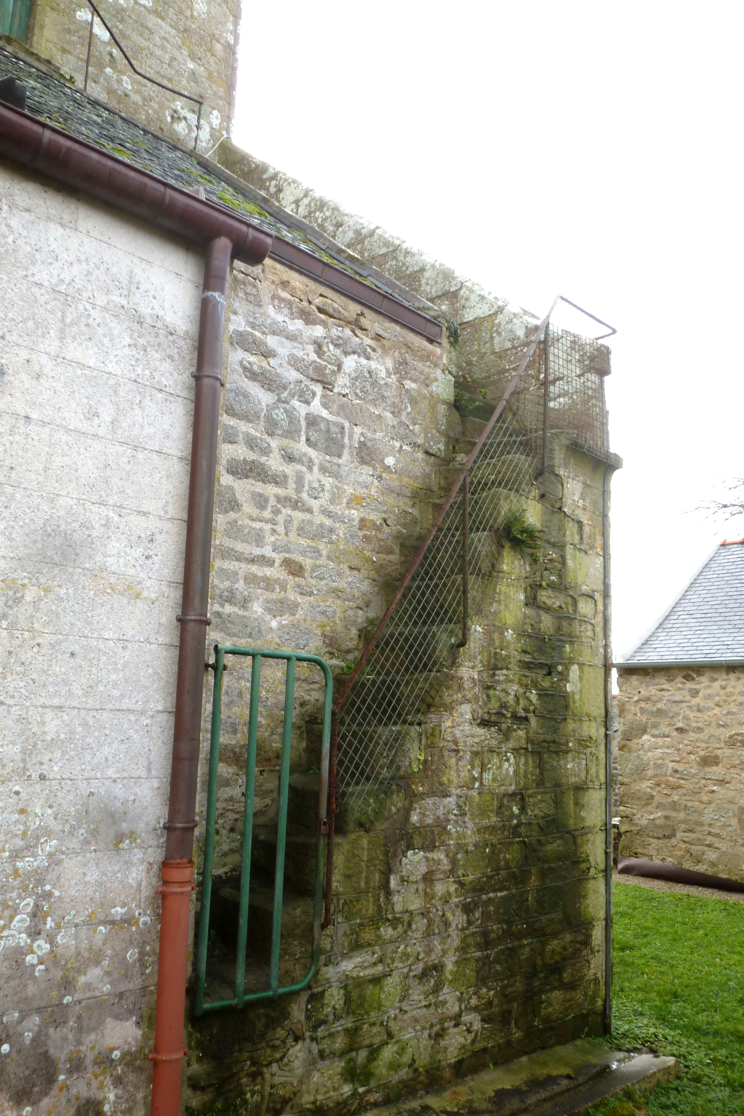 Elévation nord, détail de l'escalier extérieur menant à la chambre des cloches. (2019)Immatriculation