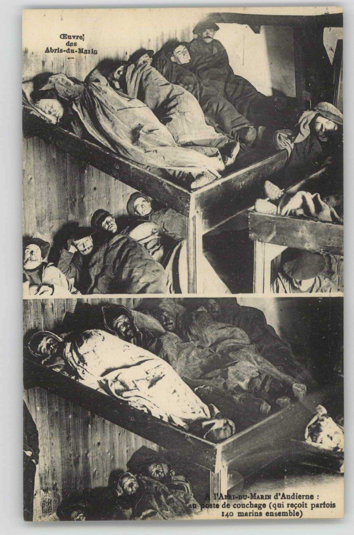 Poste de couchage. Reproduction carte postale début du 20e siècle. (Coll. Oeuvre des Abris du Marin)Immatriculation