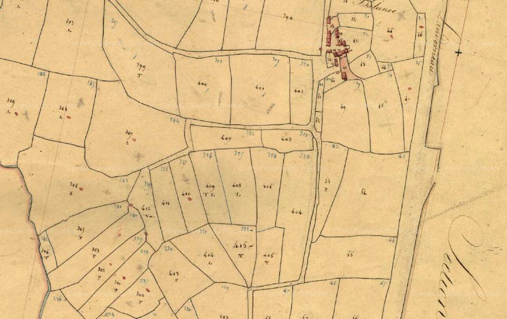 Extrait du plan du cadastre ancien de la commune de Saint-Urbain (parcelles n°C302à 305)Immatriculation