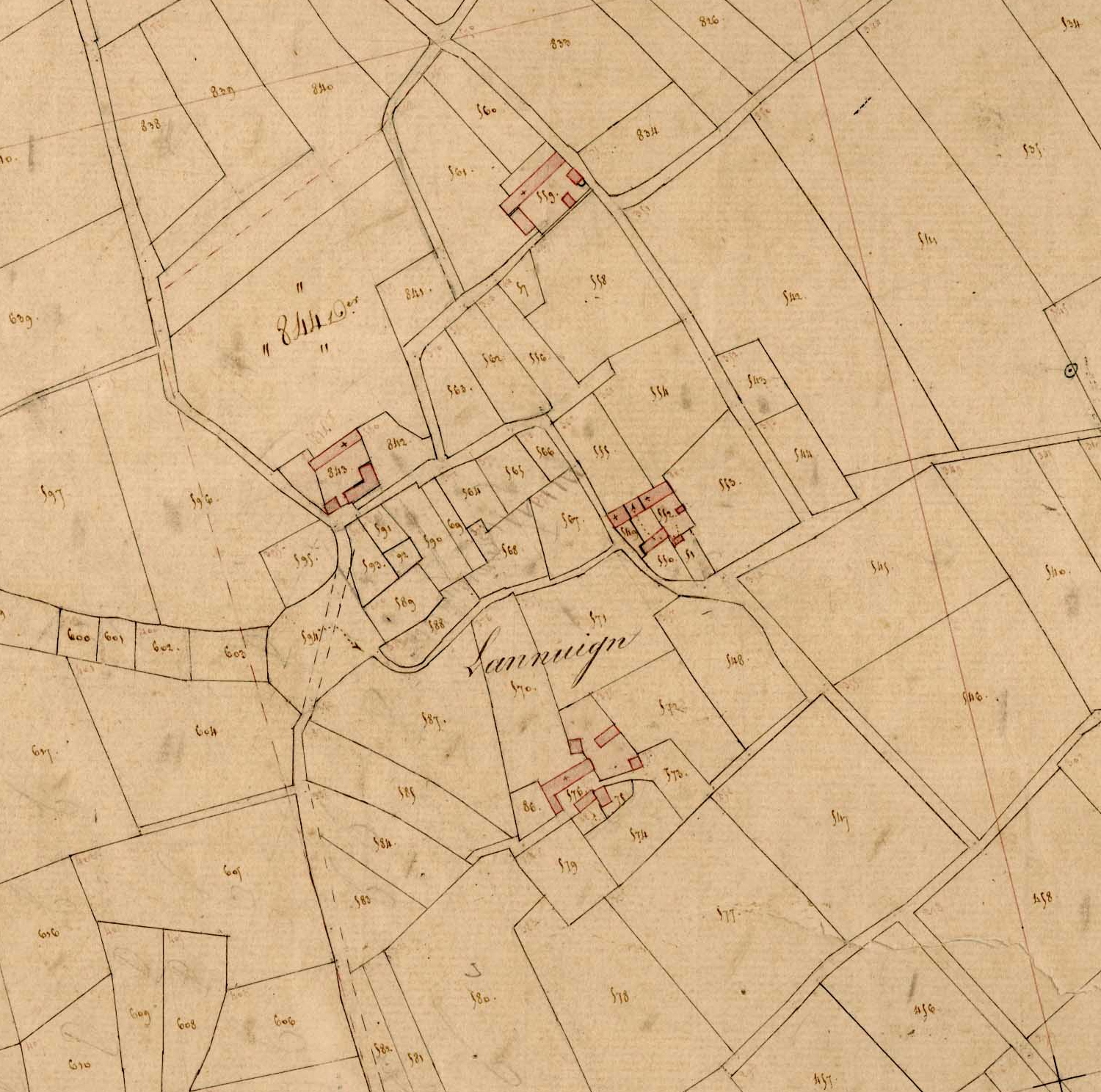 Village de Lannuign, extrait du cadastre ancien de la commune de Beuzec-Cap-Sizun, 1836.Immatriculation