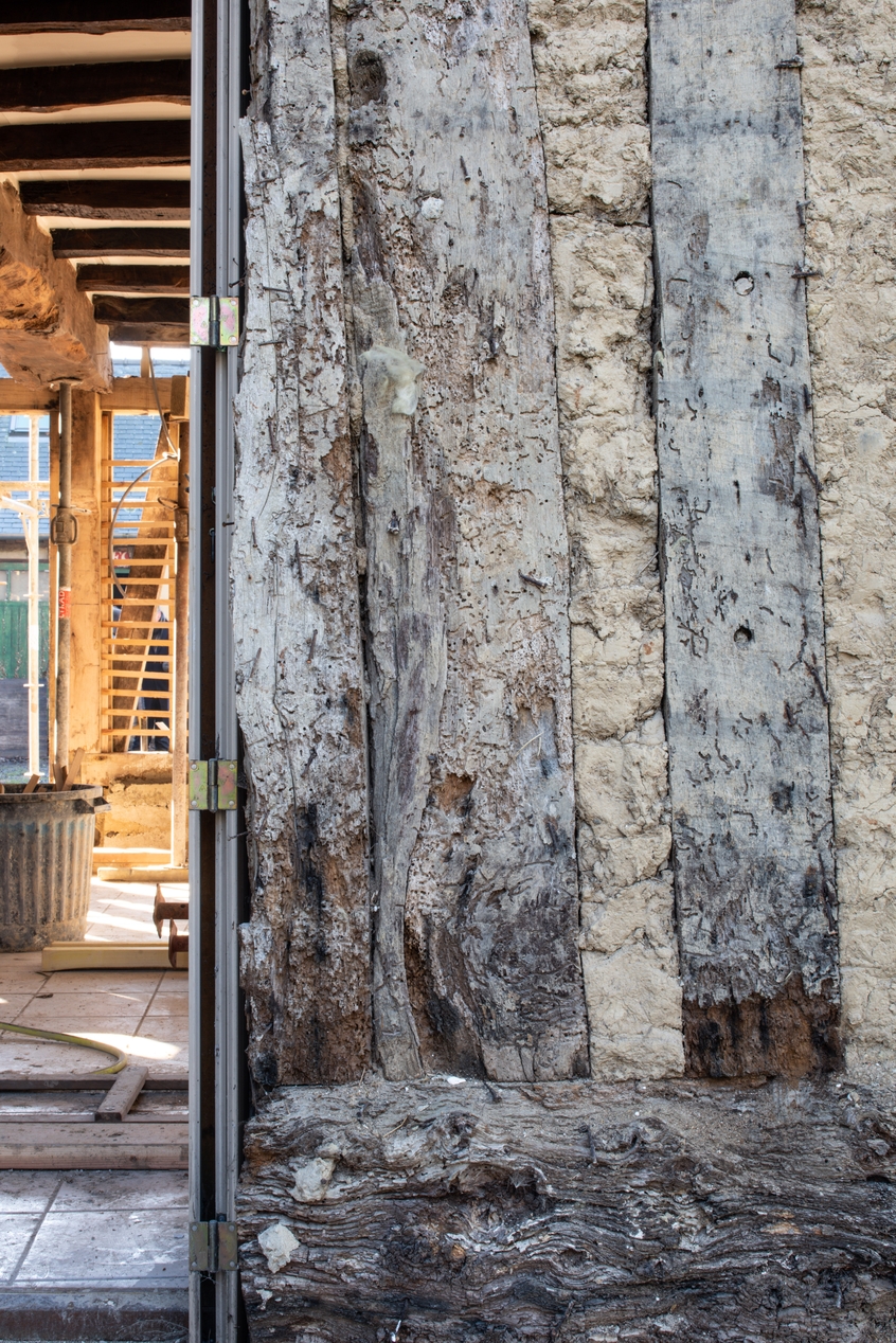 Façade nord : sablière basse avec poteaux et torchisImmatriculation