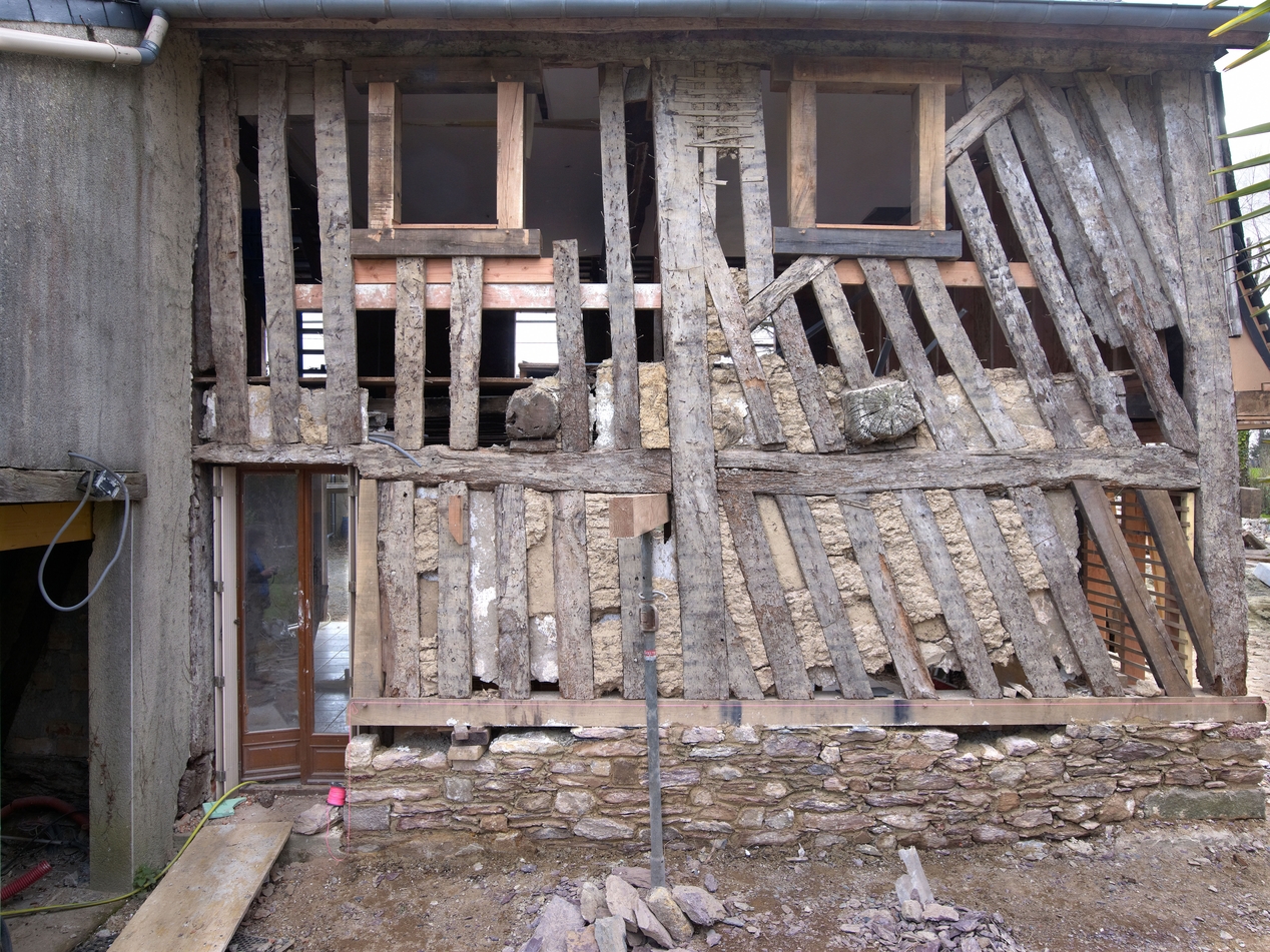 Façade nord avant l'enduitImmatriculation