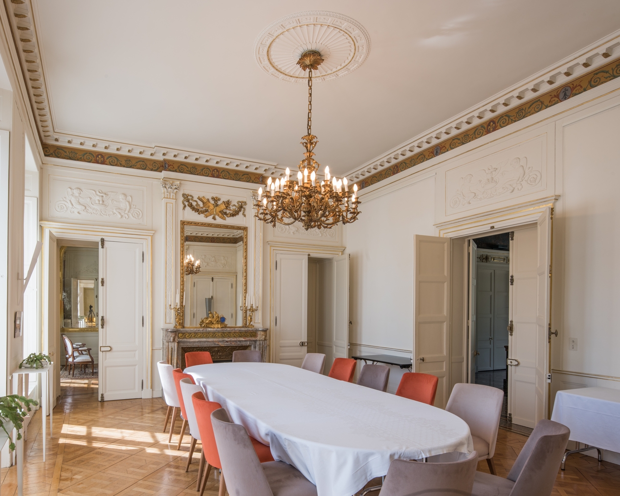Vue biaise du salon central en direction de la cheminéeImmatriculation