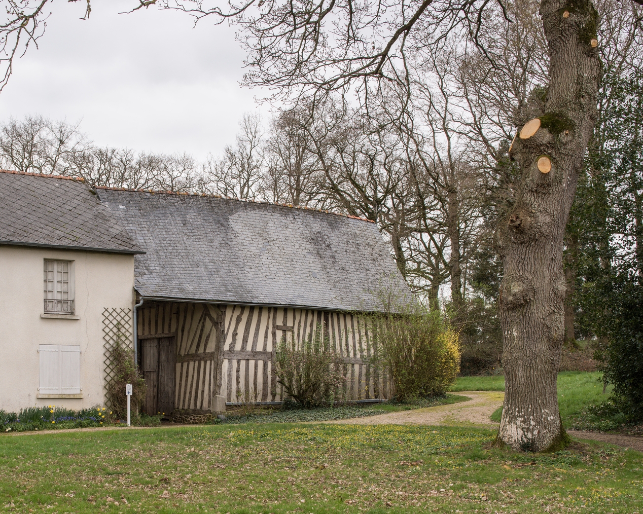 Dépendance du manoir en pan de bois avec toit à large croupeImmatriculation
