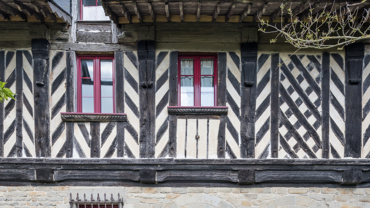 Etage en pan de bois sur partie basse en pierreImmatriculation