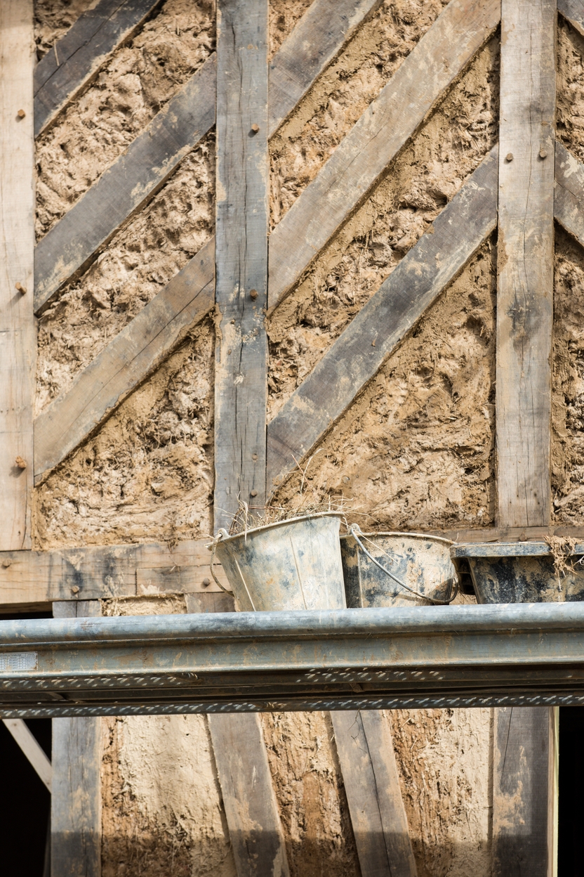 Remplissage en terre-paille sur la façade sudImmatriculation