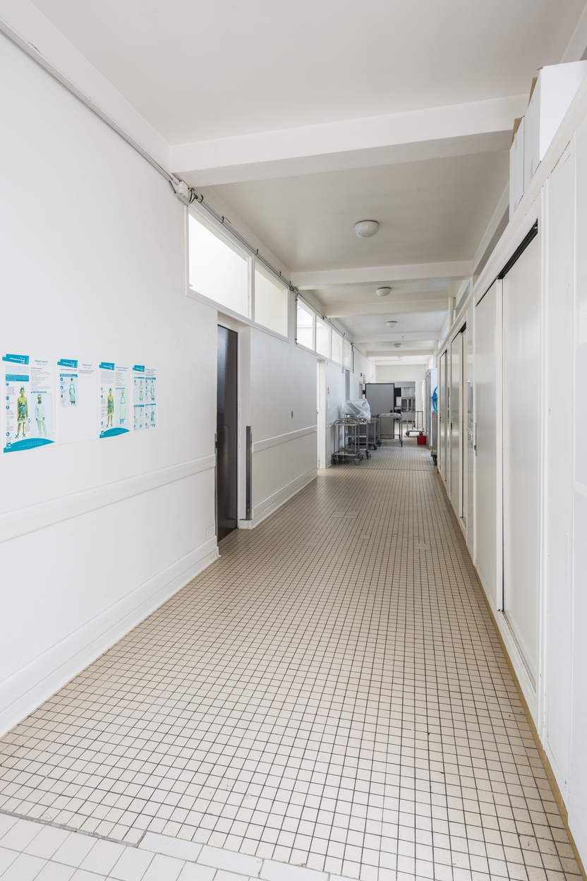 Couloir d'accès aux bureaux et aux cuisines depuis l'infirmerie.
