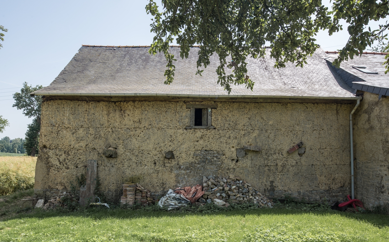 Façade arrière en mottes de terre disposées en arêtes de poissonImmatriculation