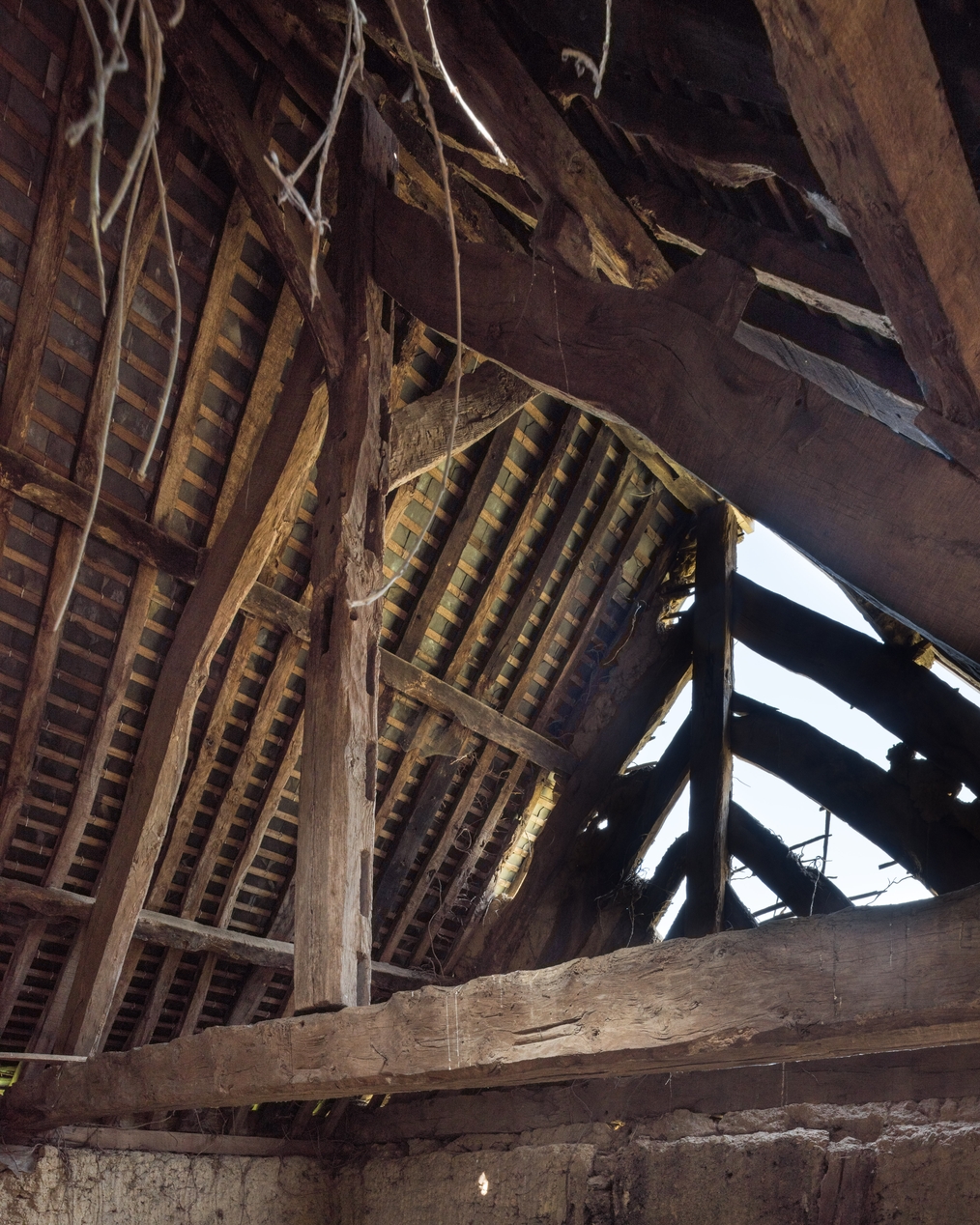 Vue d'une ferme de charpente avec traces de remploiImmatriculation