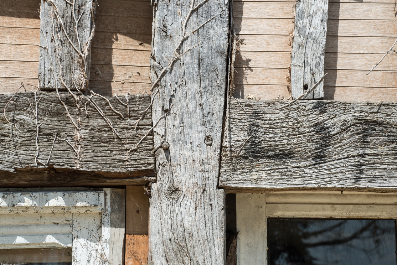 Détail d'un assemblage à embrèvement entre poteau et sablièresImmatriculation