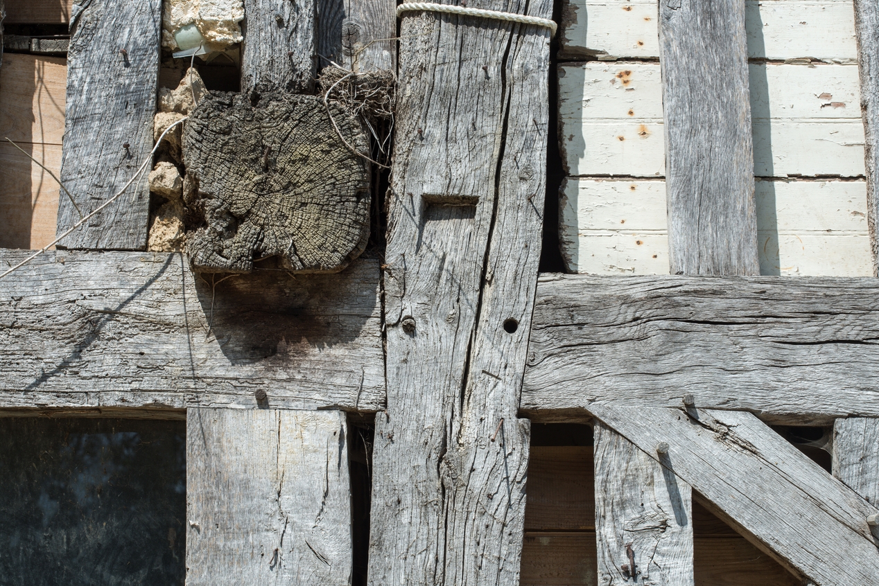 Détail d'un assemblage à embrèvement entre poteau et sablièresImmatriculation