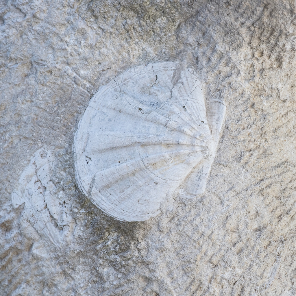 Détail sur un fossile de la sculpture "Coupe-Vent" de Yazuo Mizui (1976).Immatriculation