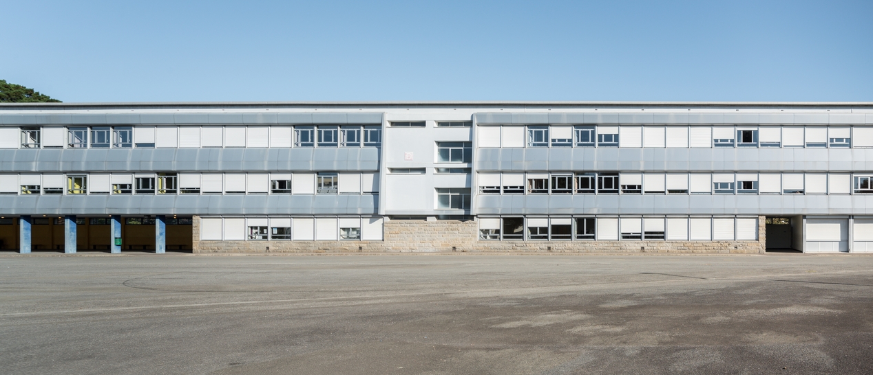 Bâtiment D, externat : façade sud. Louis Arretche et Jean Monge, architectes, plans 1959.Immatriculation