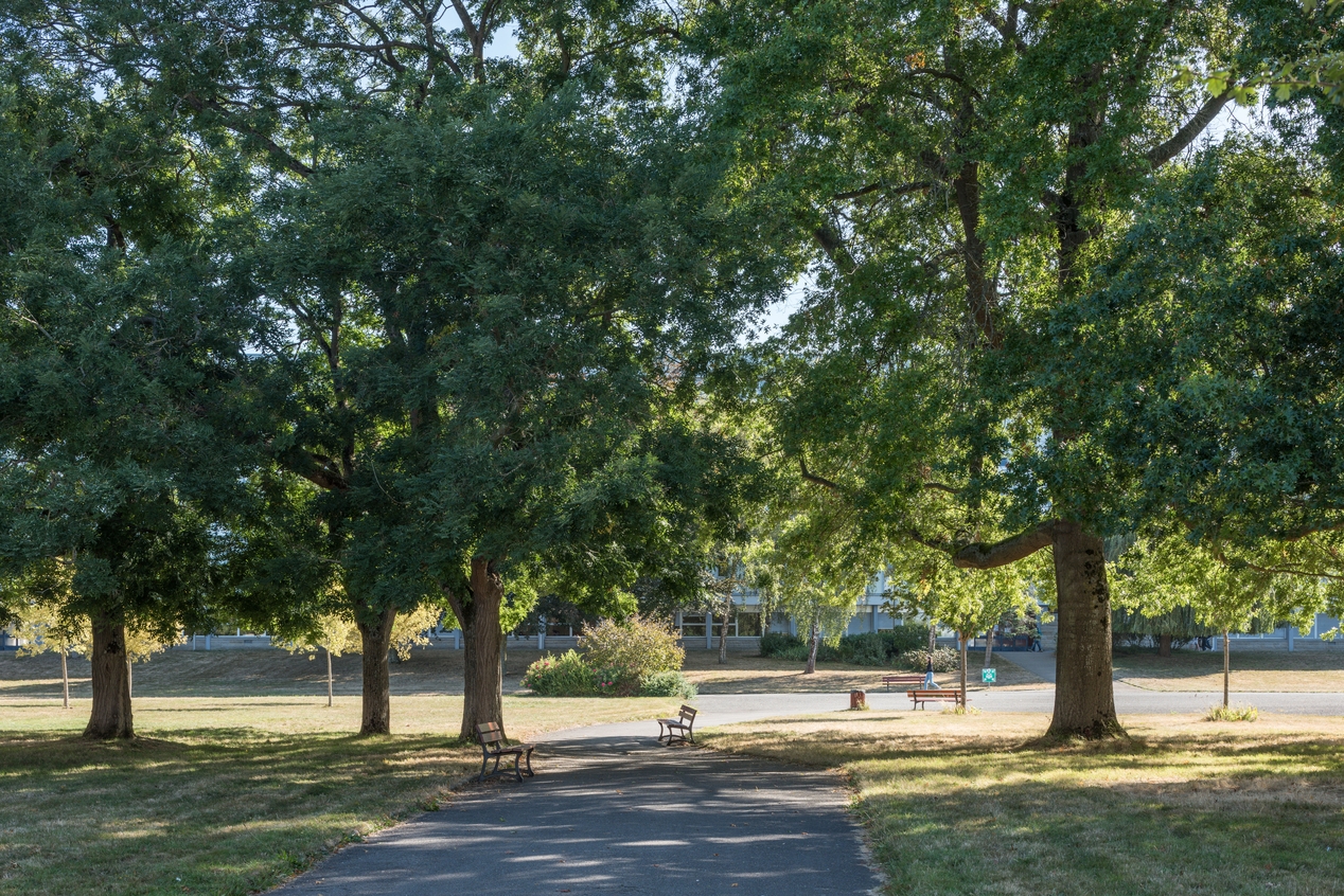 Contexte paysager : espace boisé dans le lycée, entre externat sciences et internat.Immatriculation