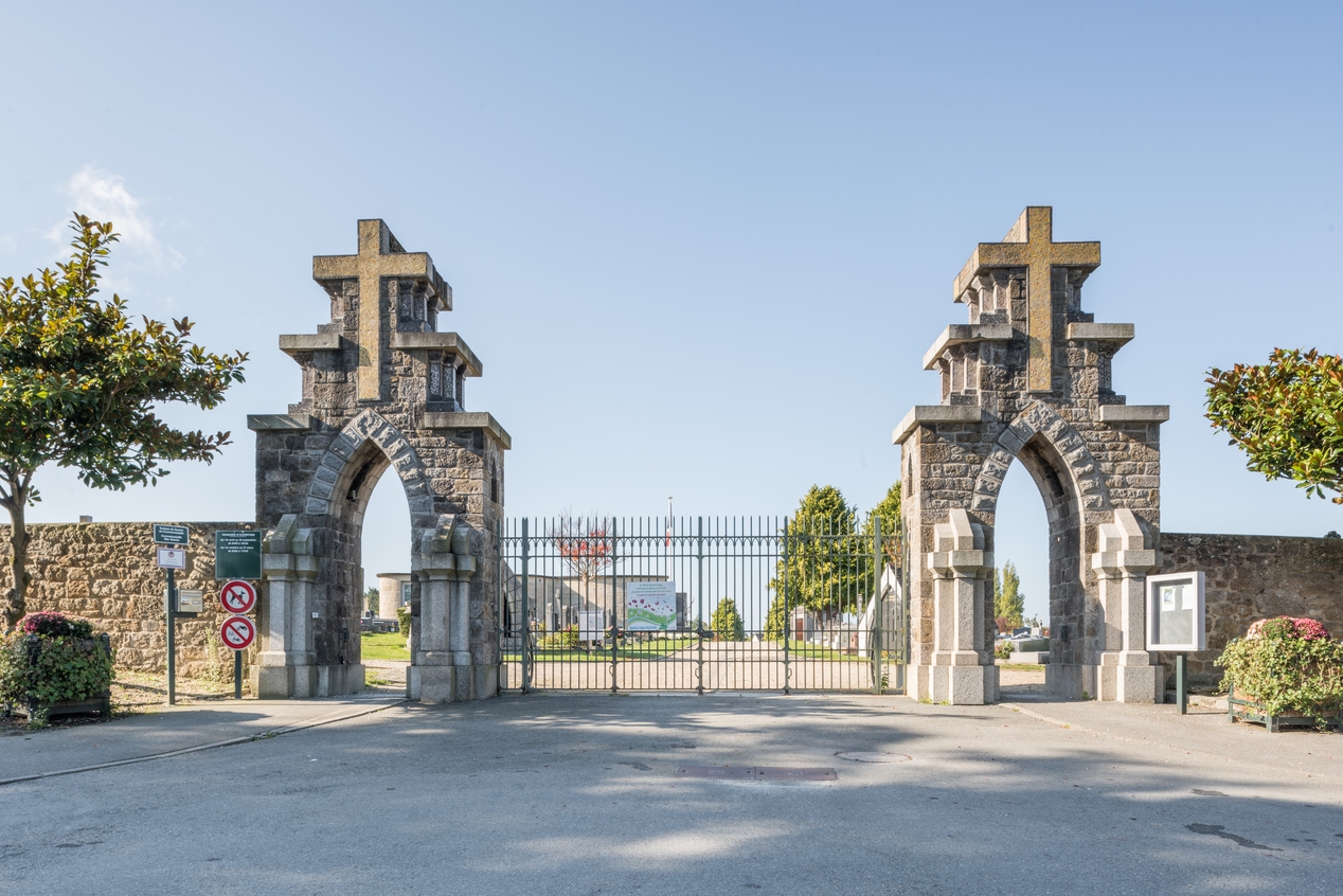 Portail d'accès encadré de deux portes piétonnes, vue généraleImmatriculation
