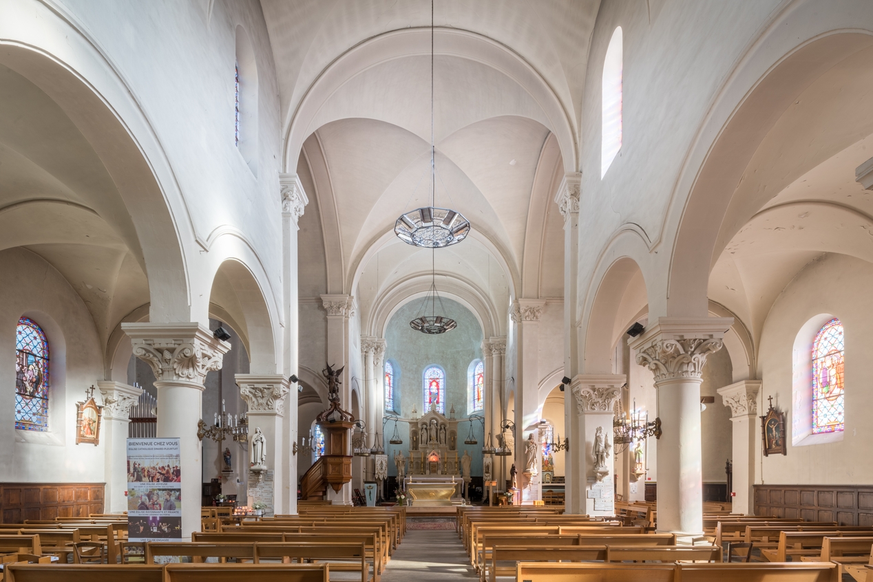 Intérieur de la nef, vue générale vers l'est en 2019Immatriculation