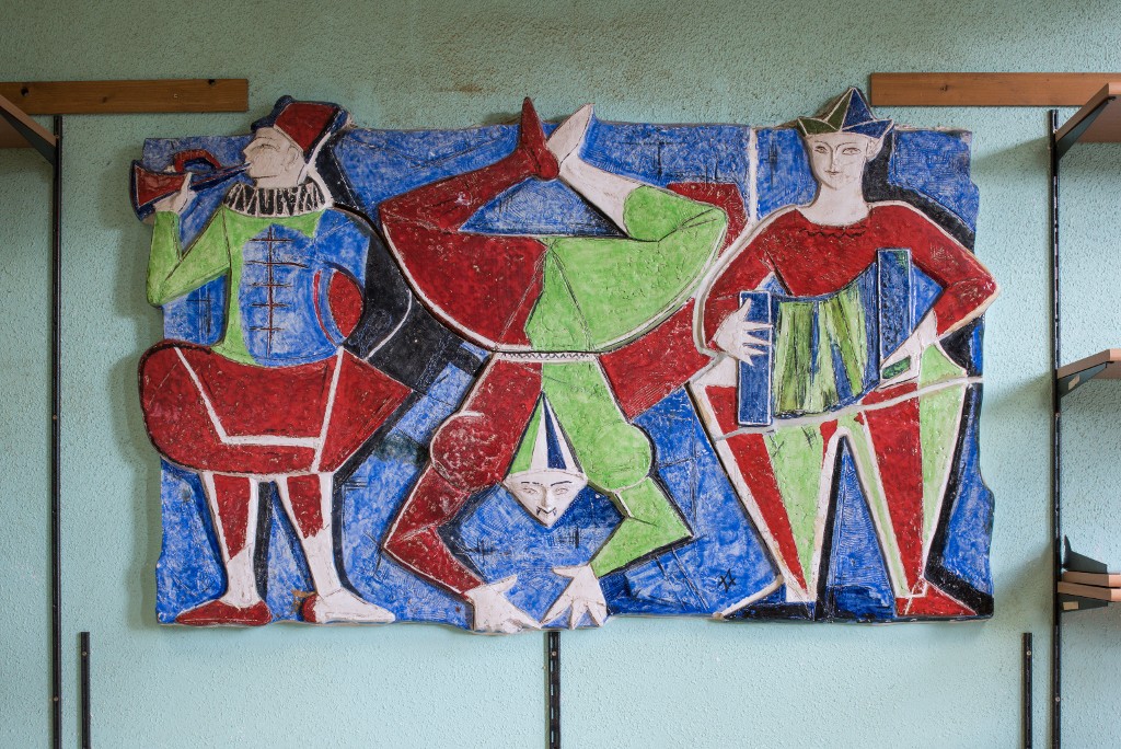 Antoniucci Volti (1915-1989). Bas- relief en céramique polychrome. Thème : le cirque, 1957-1958.Immatriculation