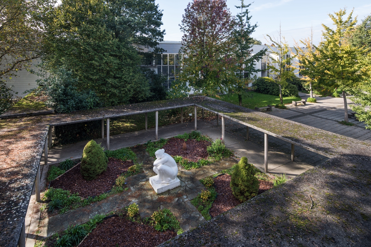 Les galeries et le petit jardin forment un écrin pour la sculpture en ronde-bosse, en pierre d'Euville, d'Antoniucci Volti. Un bel exemple de dialogue entre l'art et l'architecture.Immatriculation