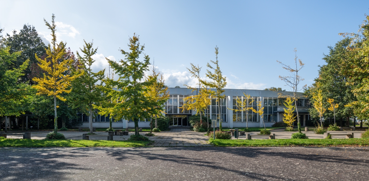 Façade est bâtiment B4 abritant, entres autres, le CDI. N. Borsa, G. Dubois et Y-M. Duval, architectes, 1989.Immatriculation