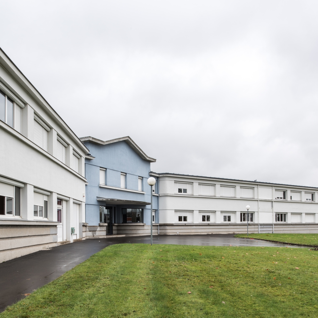 Bâtiment C, actuellement externat : anciens bâtiments de l'hospice civil de la Chesnadière, bombardé en 1944, reconstruit pour héberger le collège municipal puis une partie du lycée (Albert Hec architecte).Immatriculation
